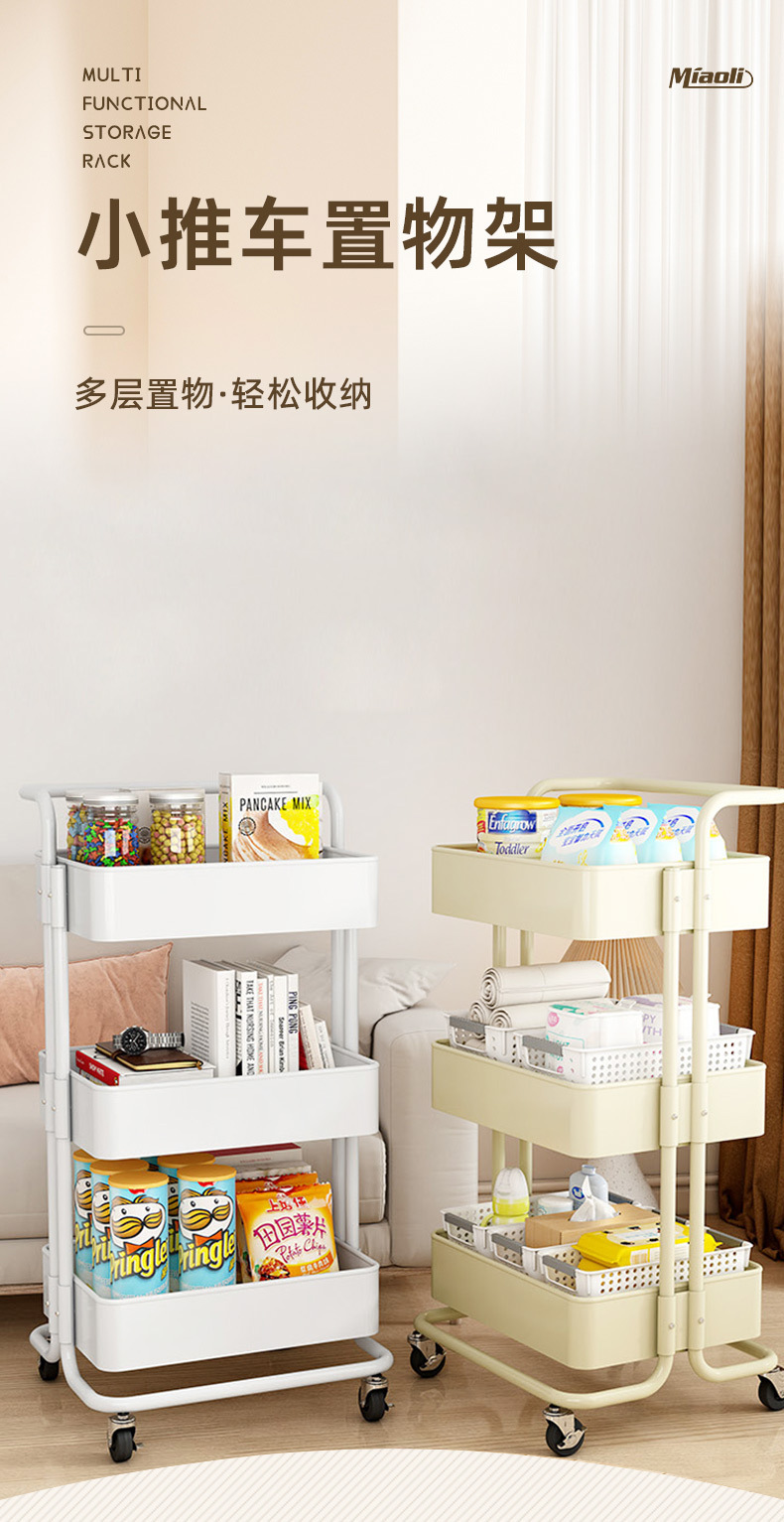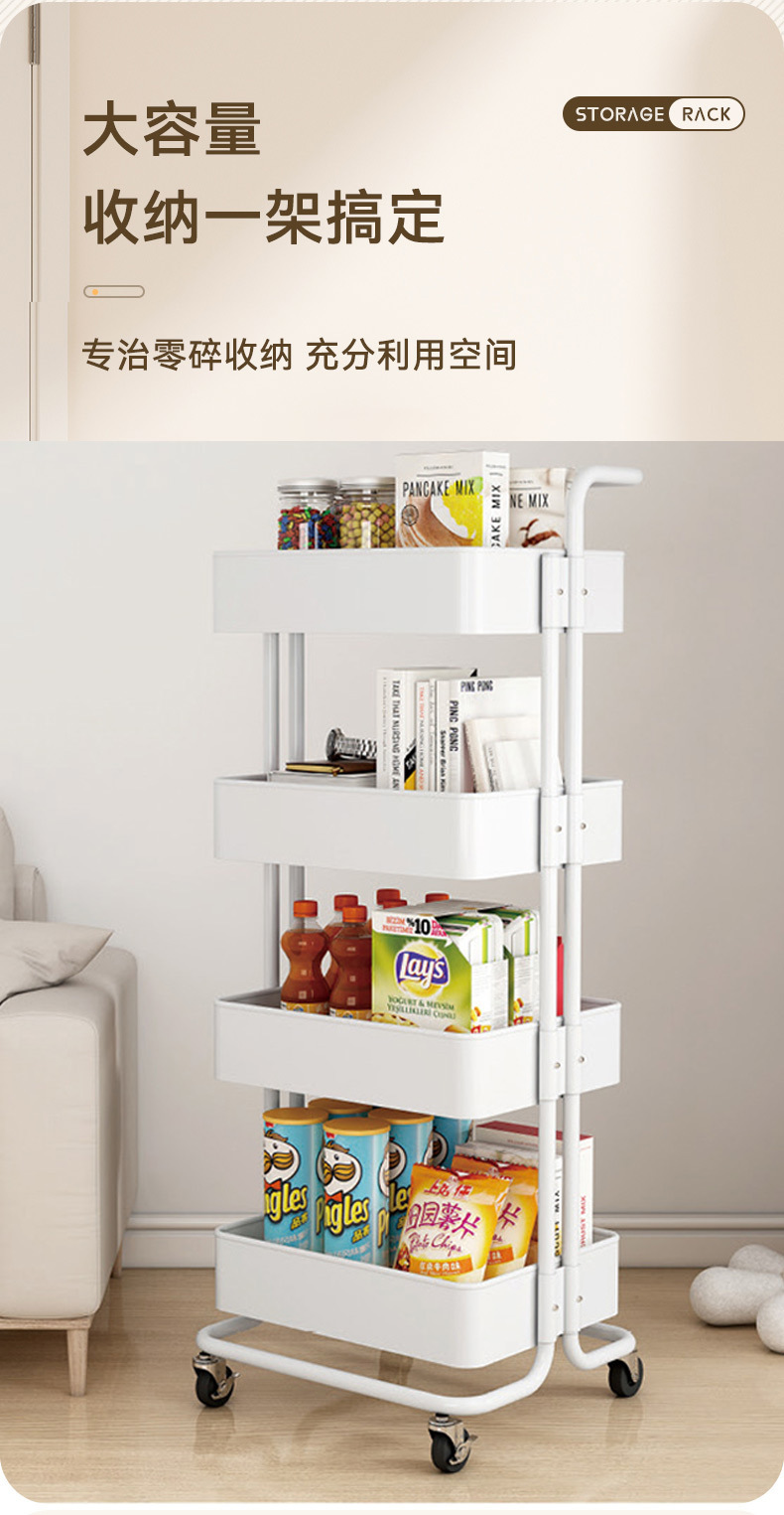 가정용 트롤리 보관 랙 스낵 보관 주방 컬러 매칭 기숙사 다층 랙 팔걸이 트롤리 도매스토어 가기