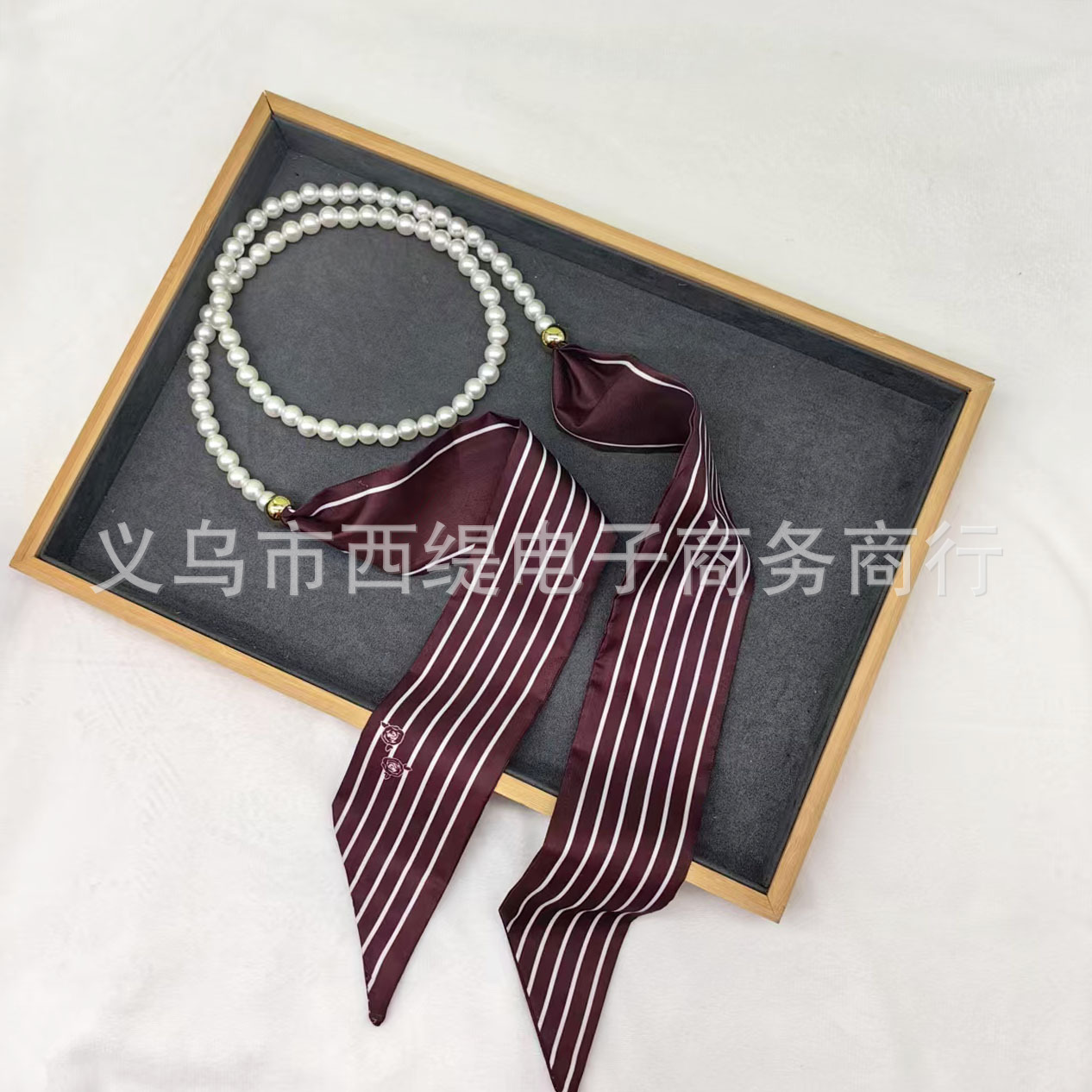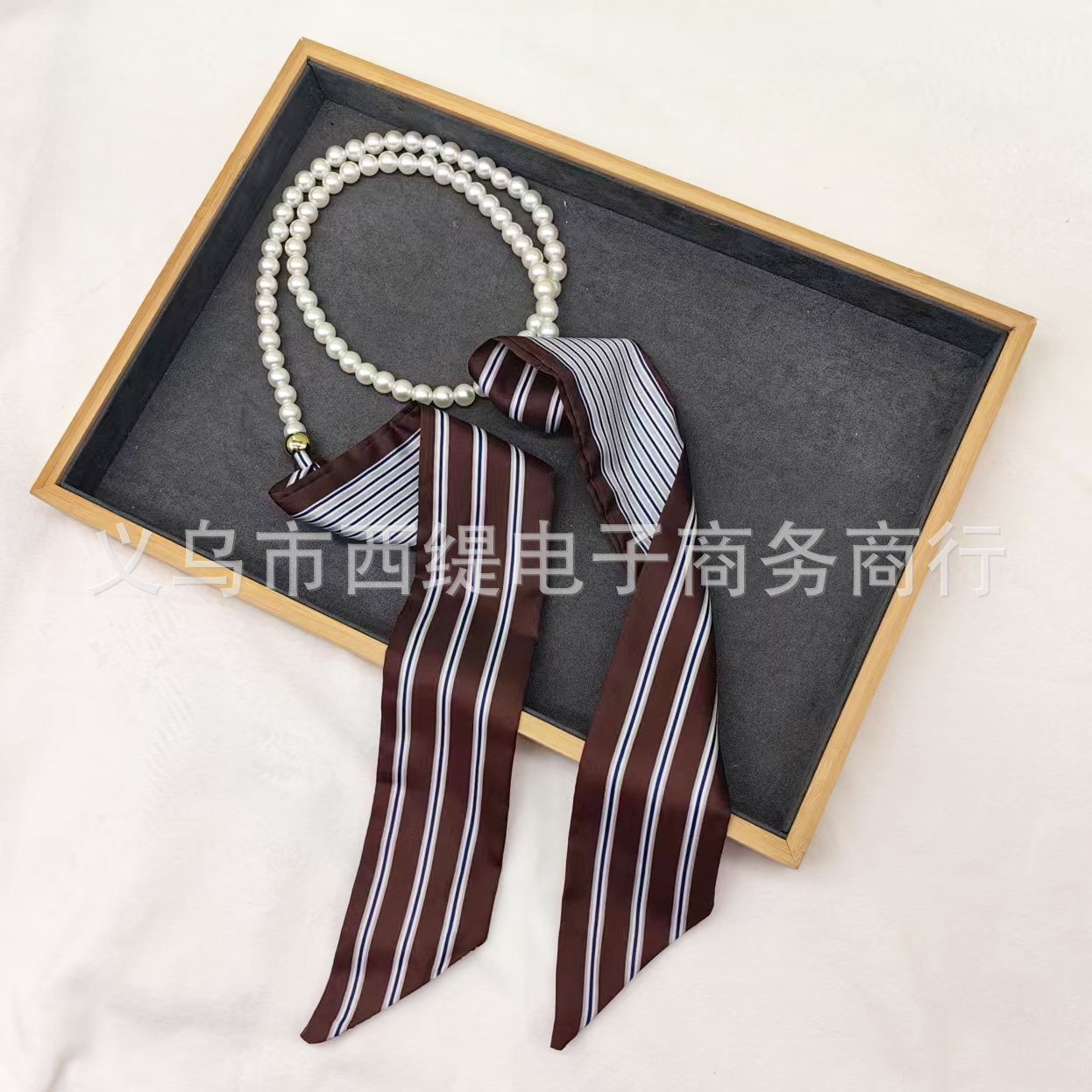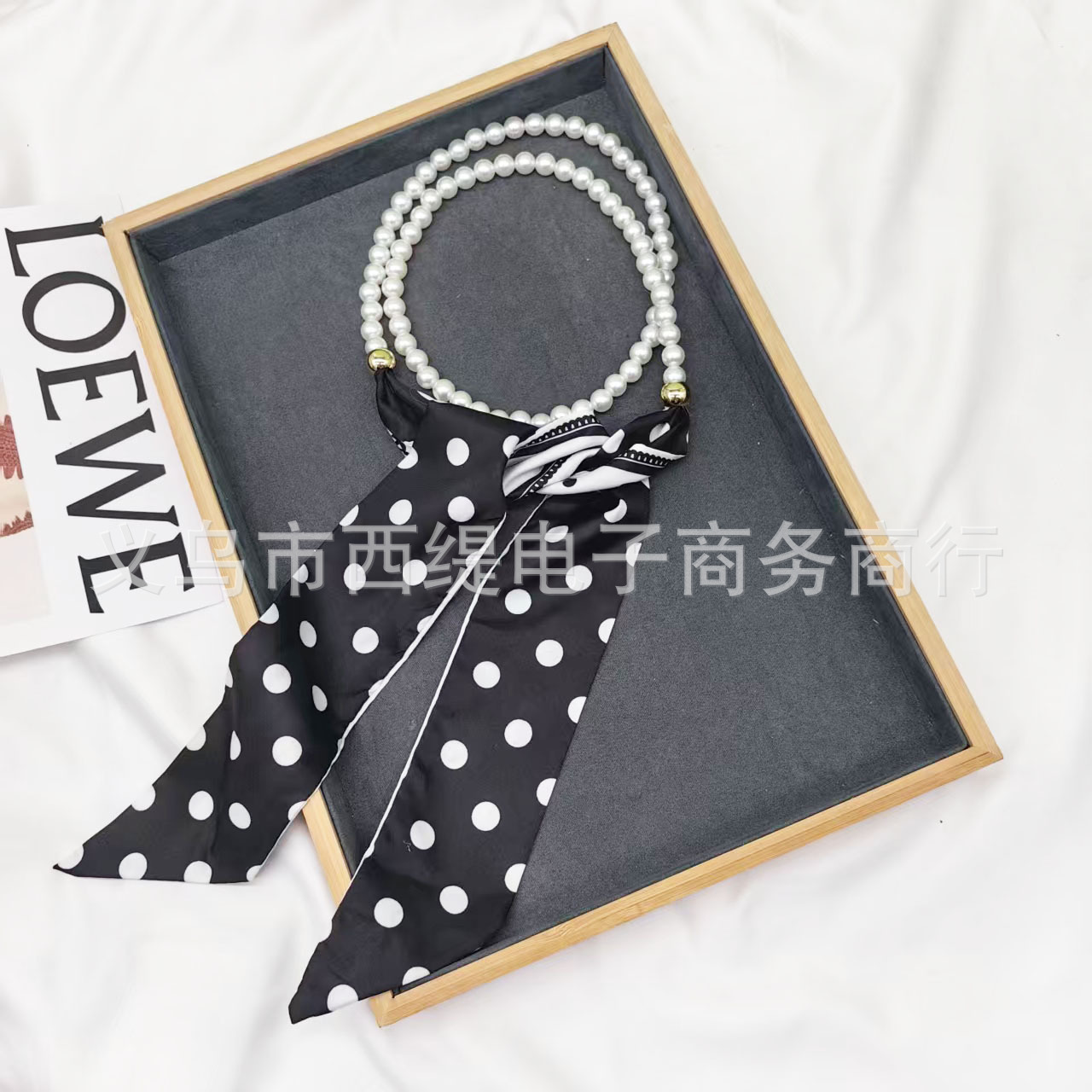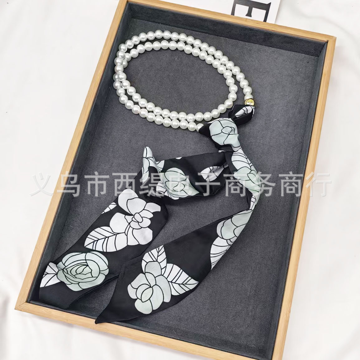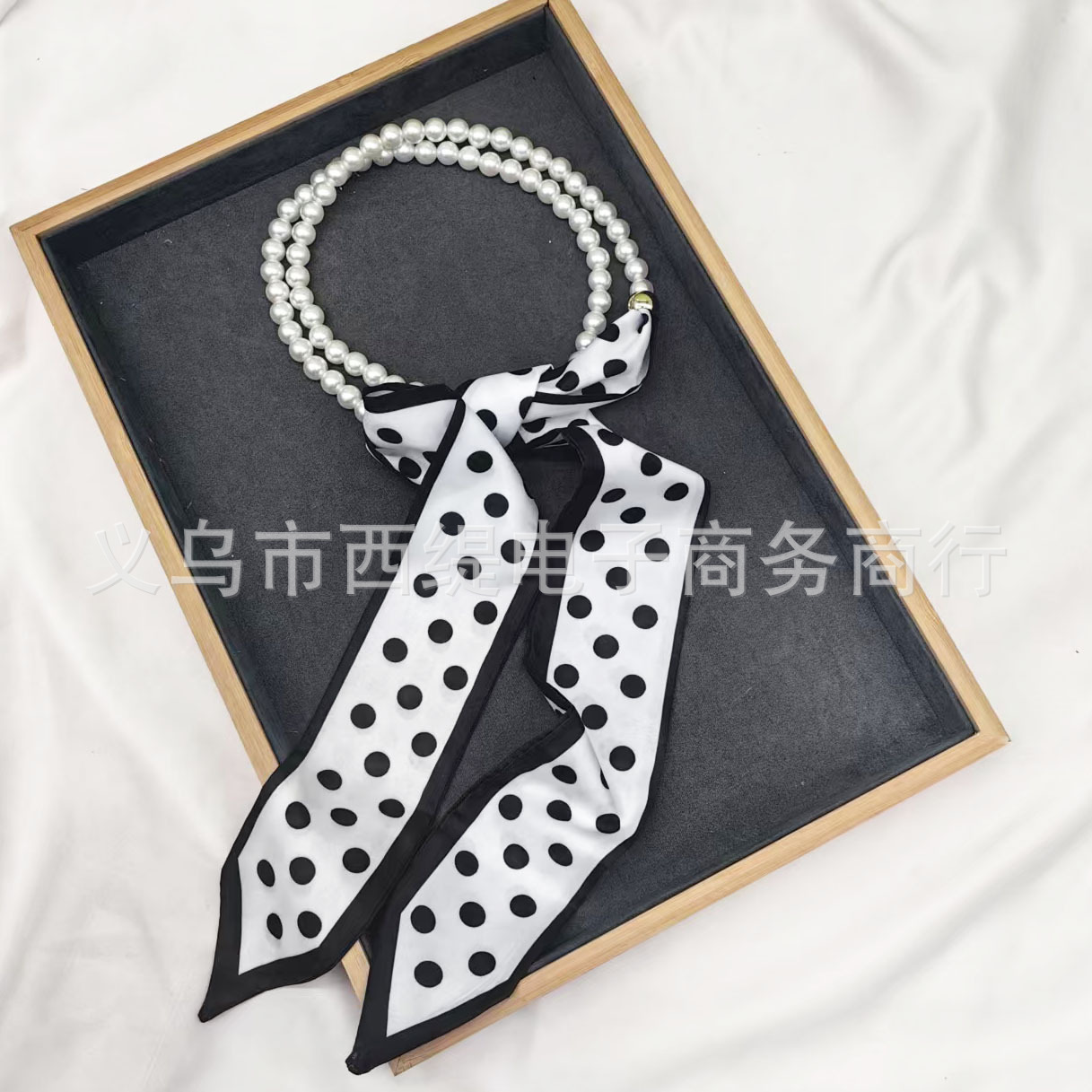 봄 여름 진주 실크 스카프 목걸이, 우아하고 고급스러운 스타일, 여성을 위한 나른한 틈새 쇄골 체인 장식, 가방 리본