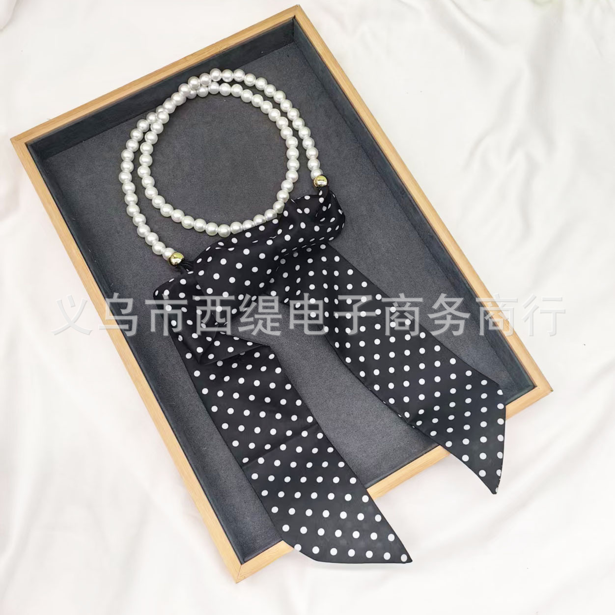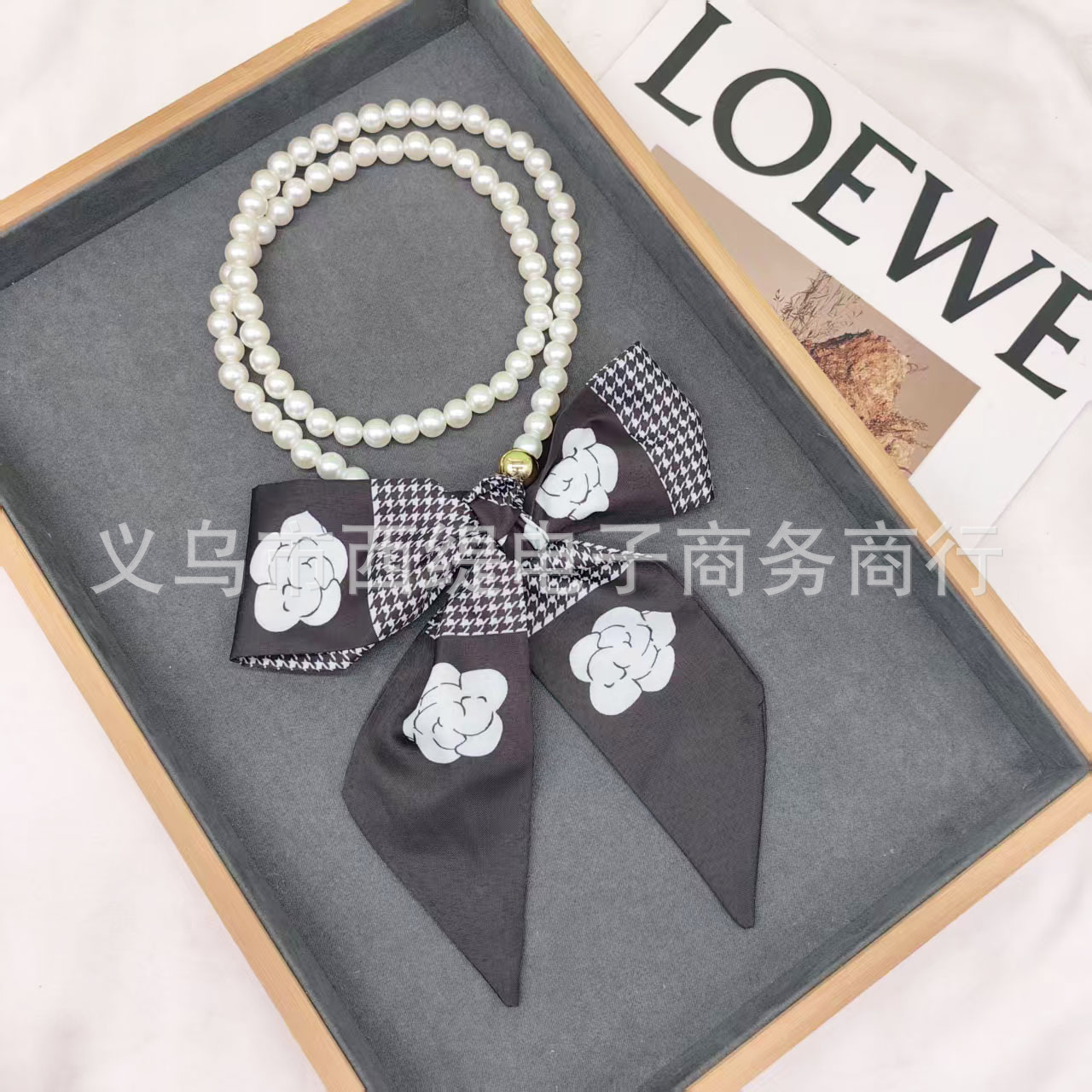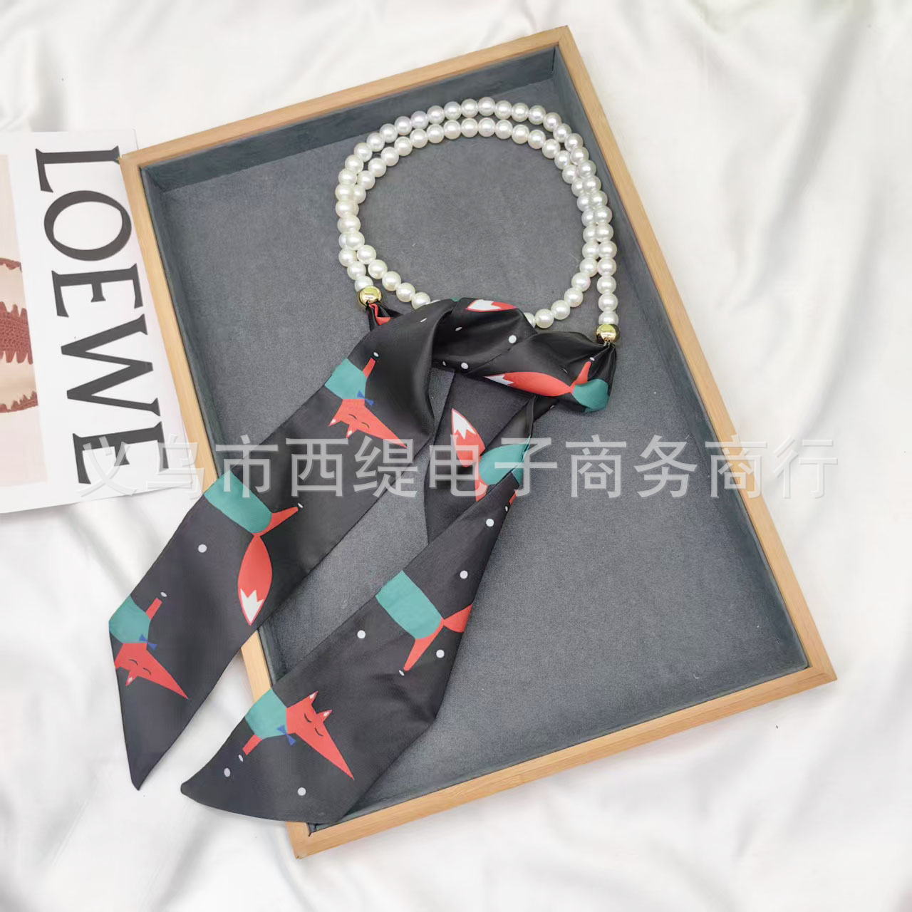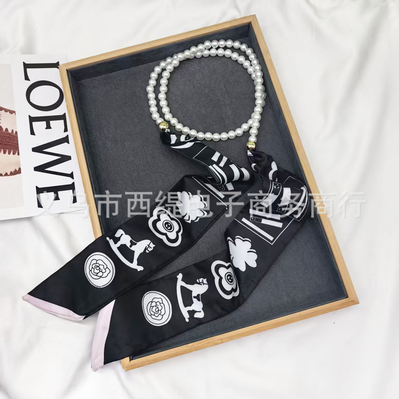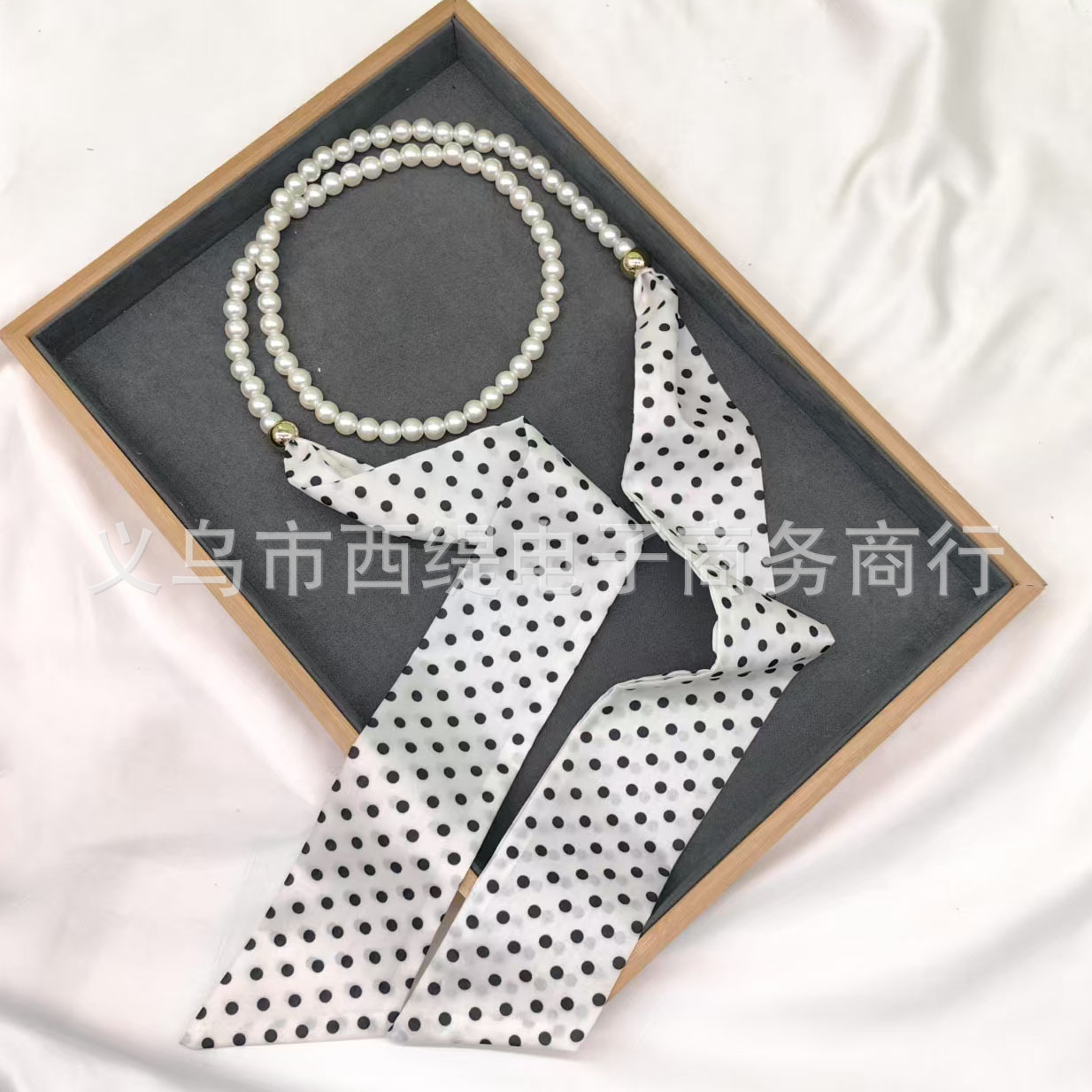 봄 여름 진주 실크 스카프 목걸이, 우아하고 고급스러운 스타일, 여성을 위한 나른한 틈새 쇄골 체인 장식, 가방 리본