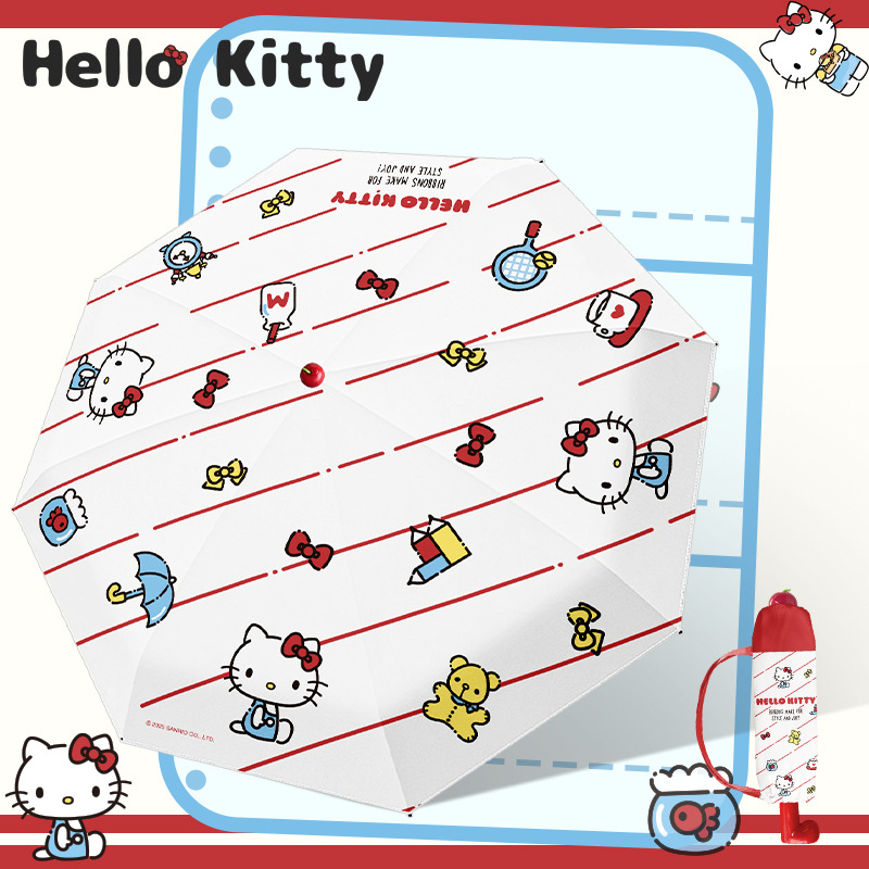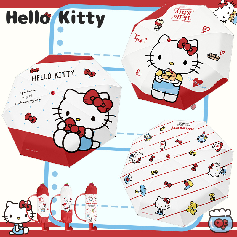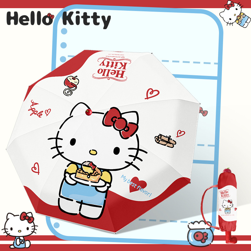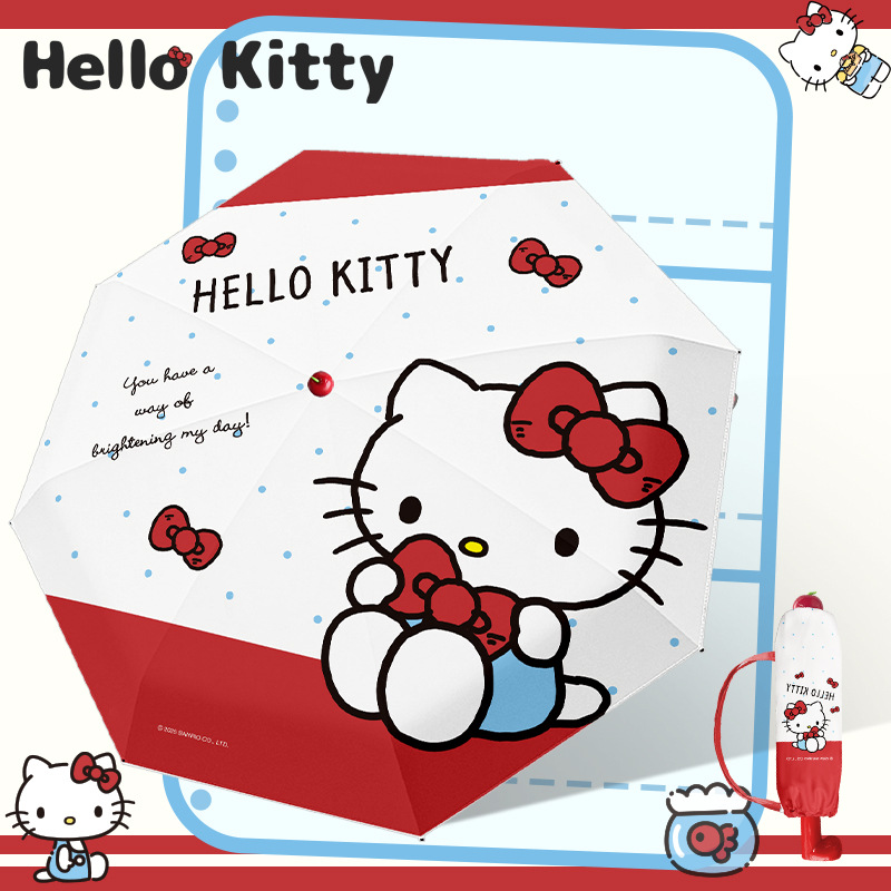 산리오 정품 빨간 부츠 kt 고양이 우산 여성용 비 또는 빛 고급스러운 헬로키티 자외선 차단 우산스토어 가기