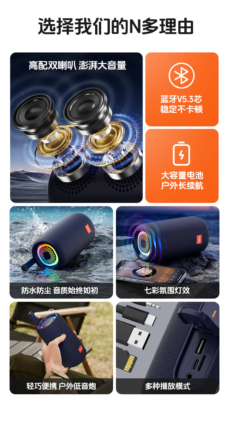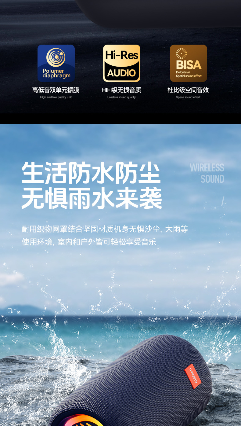 스마트 오디오 블루투스 스피커 무선 대용량 고품질 야외 휴대용 방수 자동차 서브 우퍼