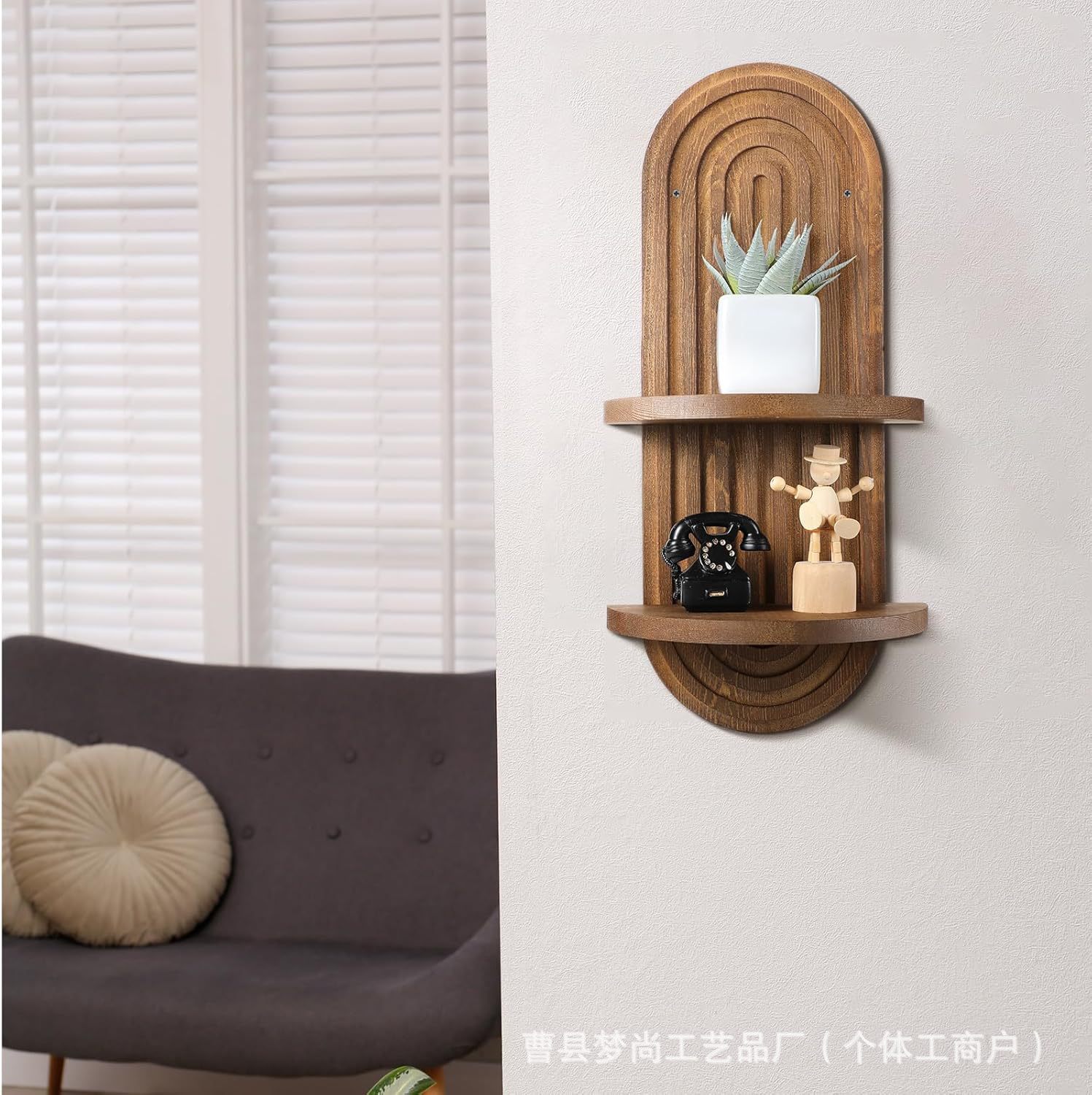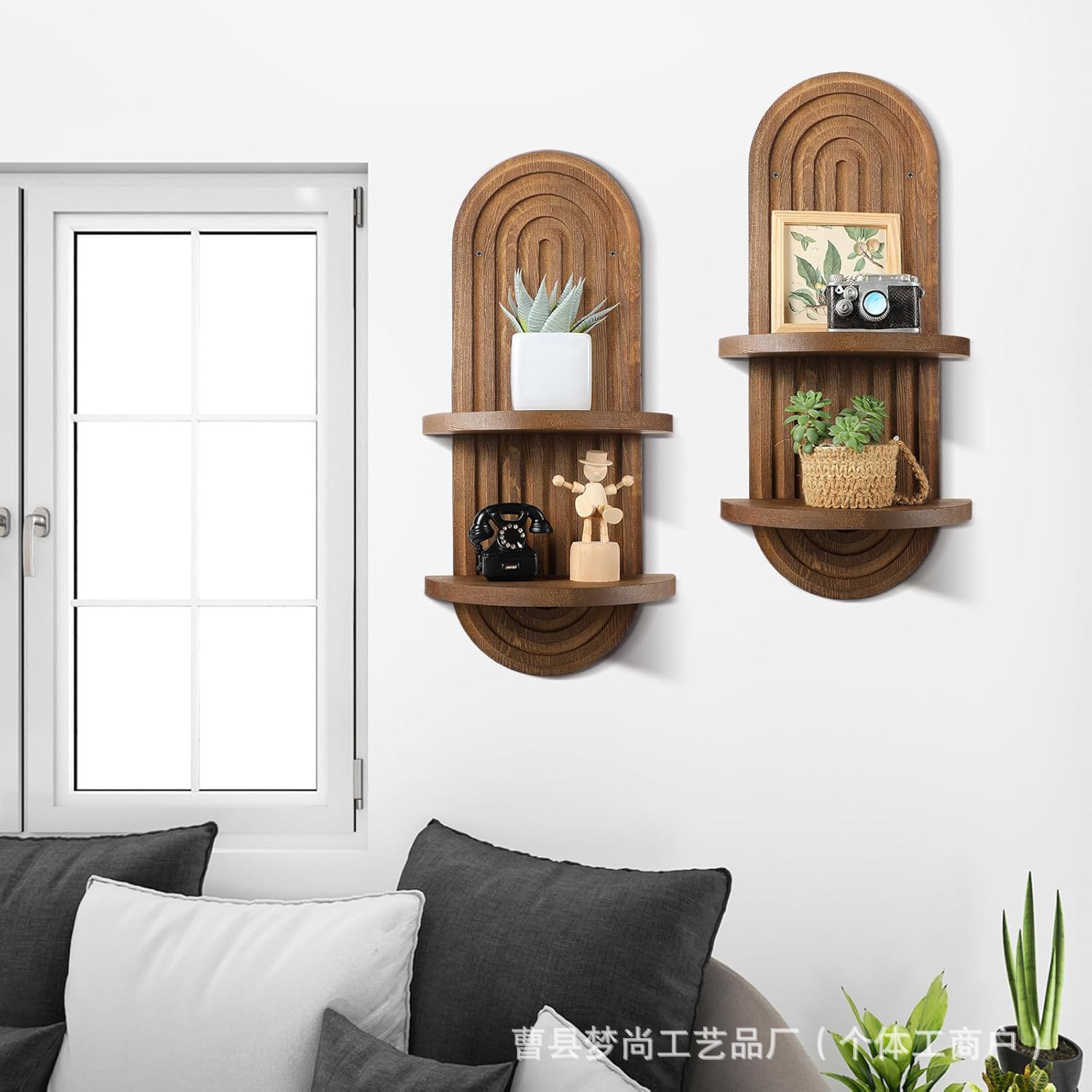 나무 벽걸이 선반 아치형 플로팅 선반 벽걸이 나무 벽 장식 침실 거실 보관 간단한 디자인스토어 가기