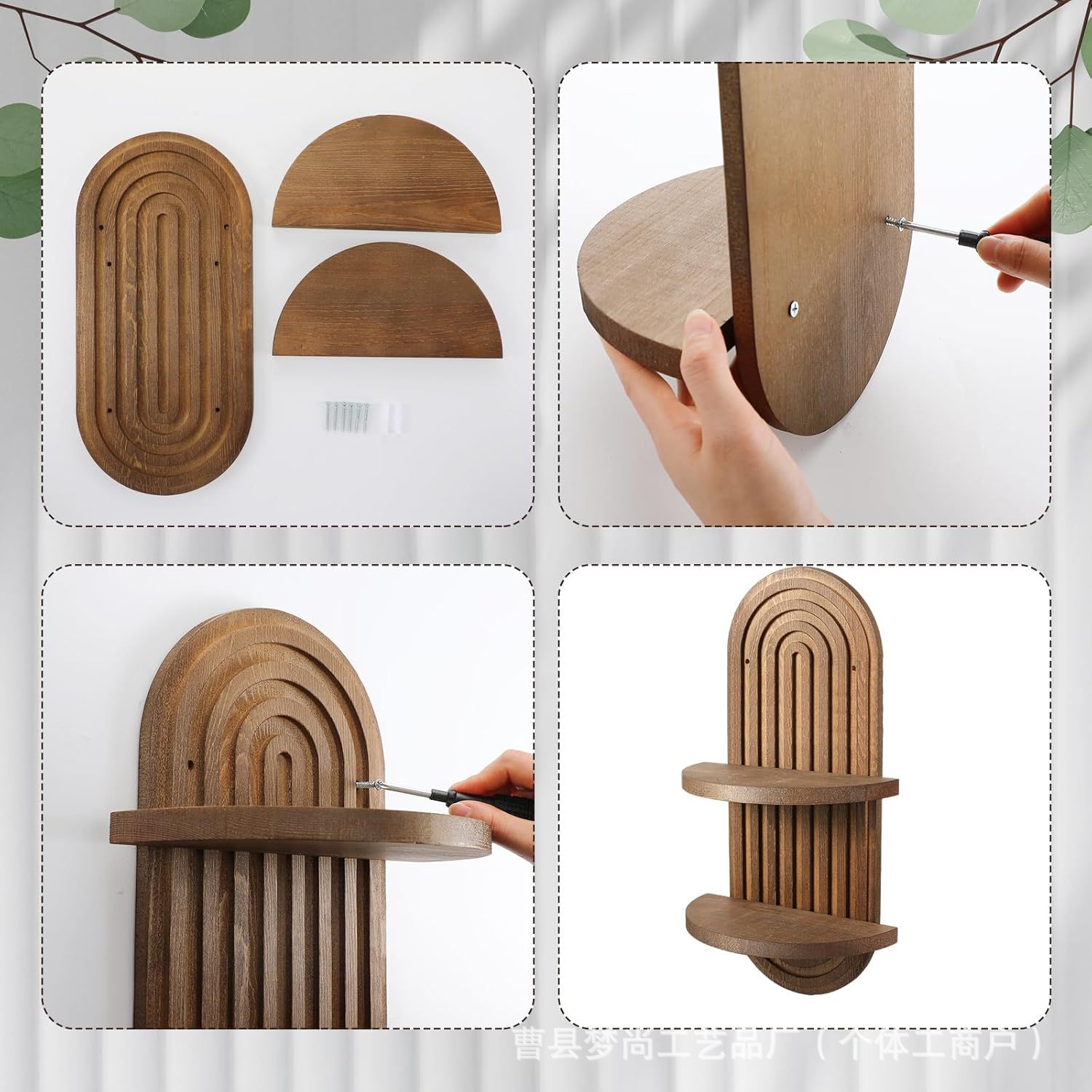 나무 벽걸이 선반 아치형 플로팅 선반 벽걸이 나무 벽 장식 침실 거실 보관 간단한 디자인