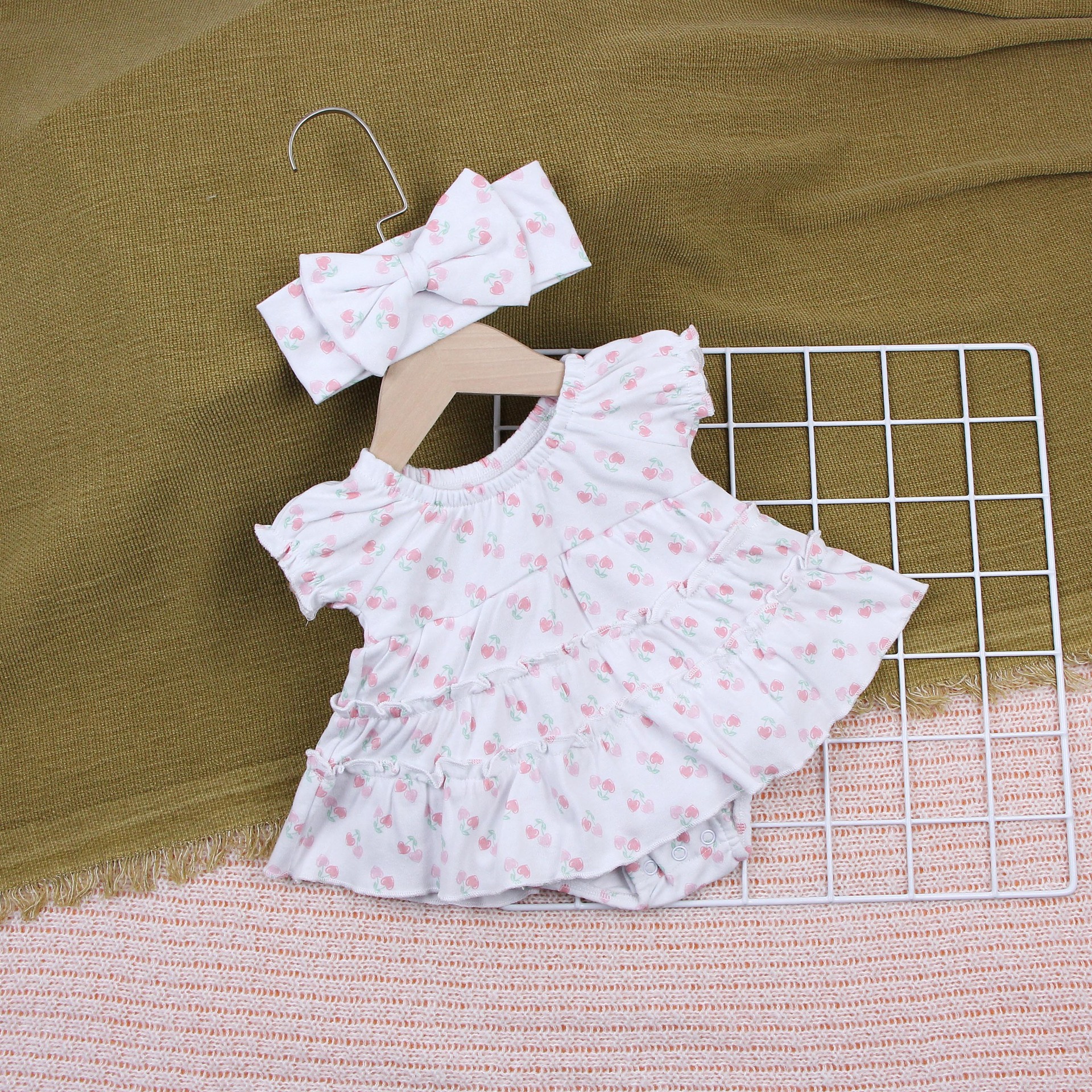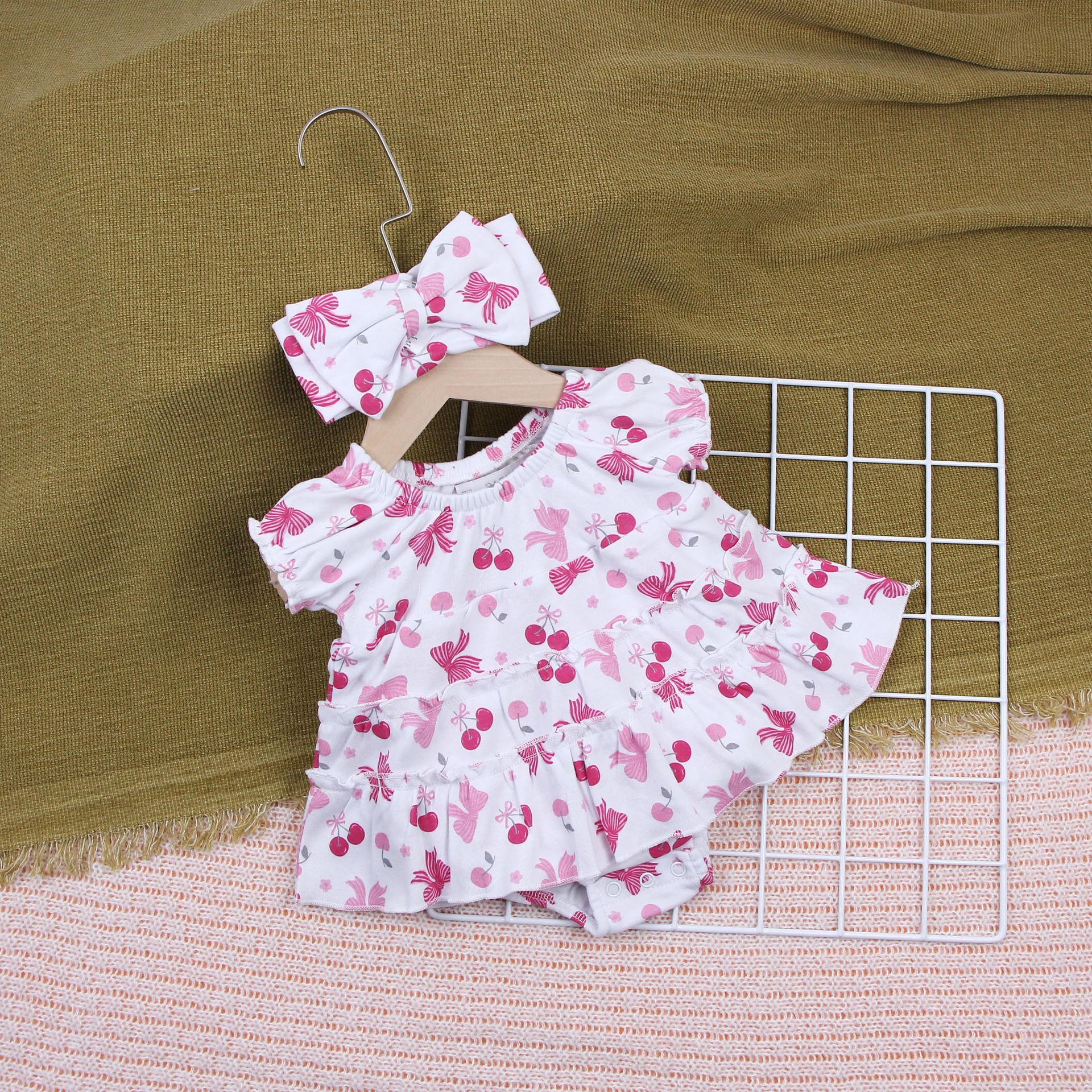 • 흰색 배경 체리 리본-아기 여름 드레스