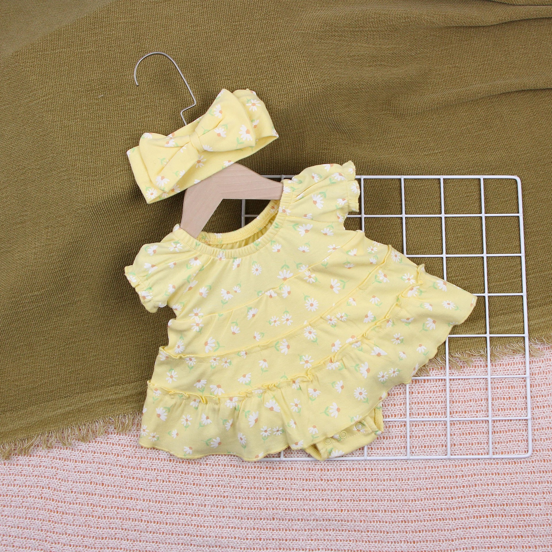 • 노란색 배경 흰색 국화-아기 여름 드레스