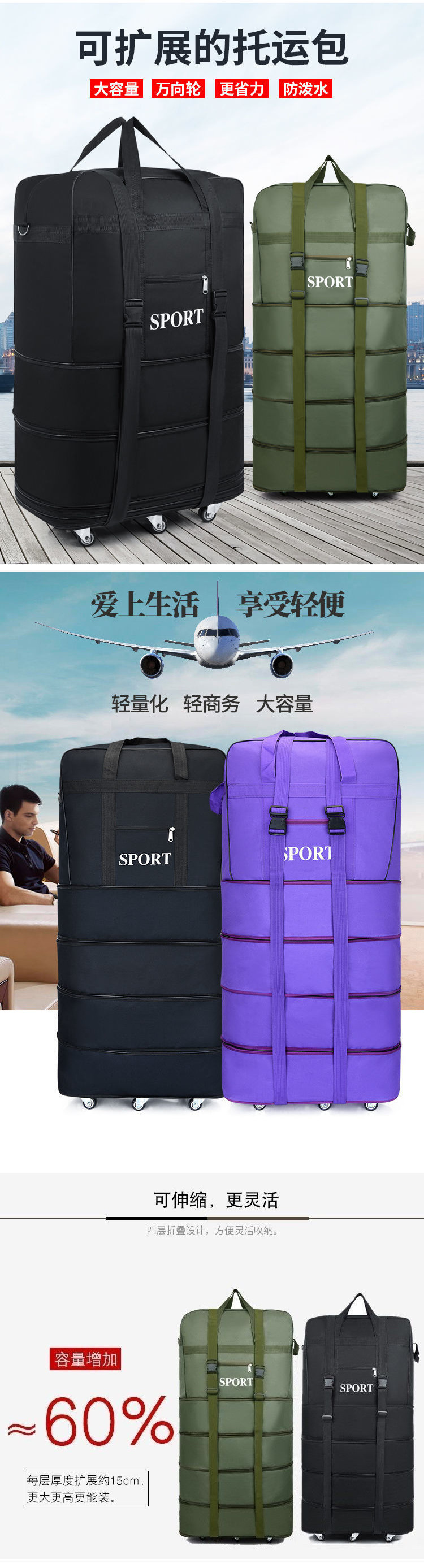 접이식 방수 158 항공 체크 가방 옥스포드 천 대용량 수하물 가방 바퀴 달린 가방 이동 가방스토어 가기