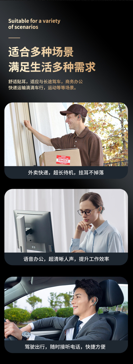 새로운 블루투스 헤드셋, 매우 긴 대기 시간, 비즈니스 스포츠 라이더, 택시, 대용량 배터리, Android 및 Apple 범용