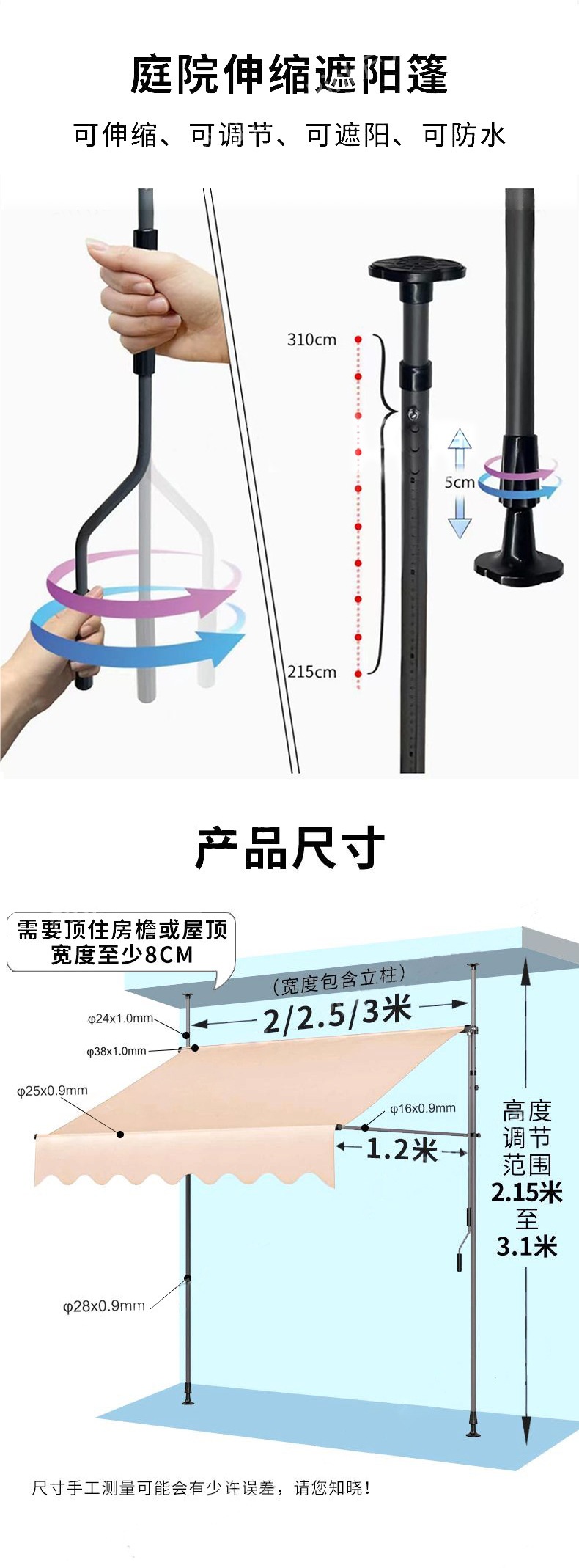 직립형 차양, 접이식 개폐식 차양, 상점 수동식 차양, 처마, 발코니, 안뜰, 가정용 비 및 자외선 차단 차양