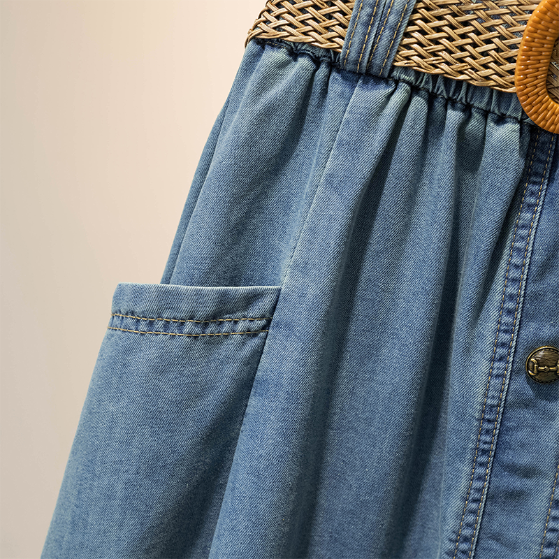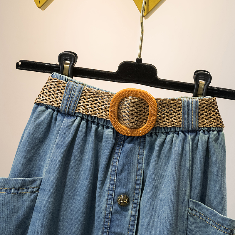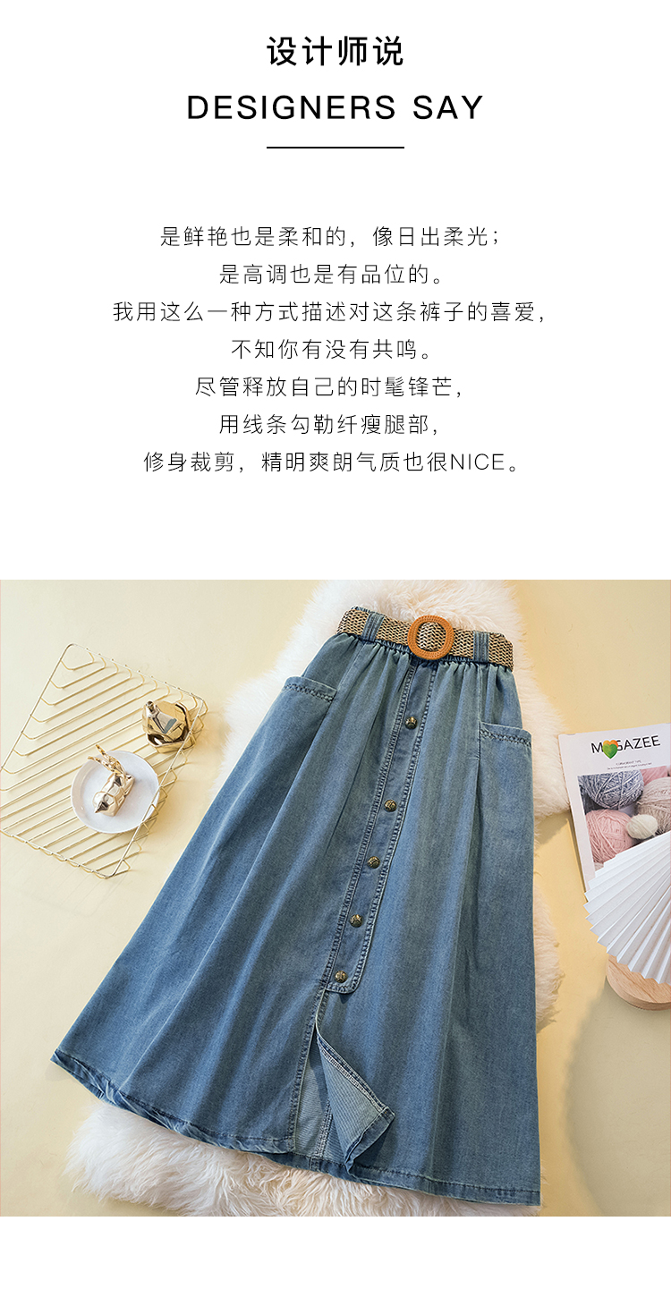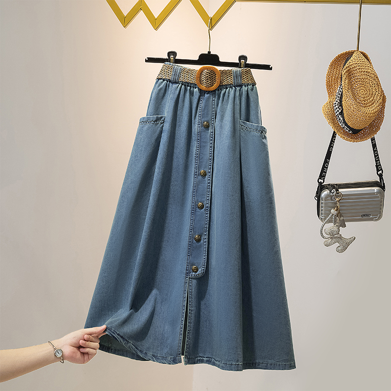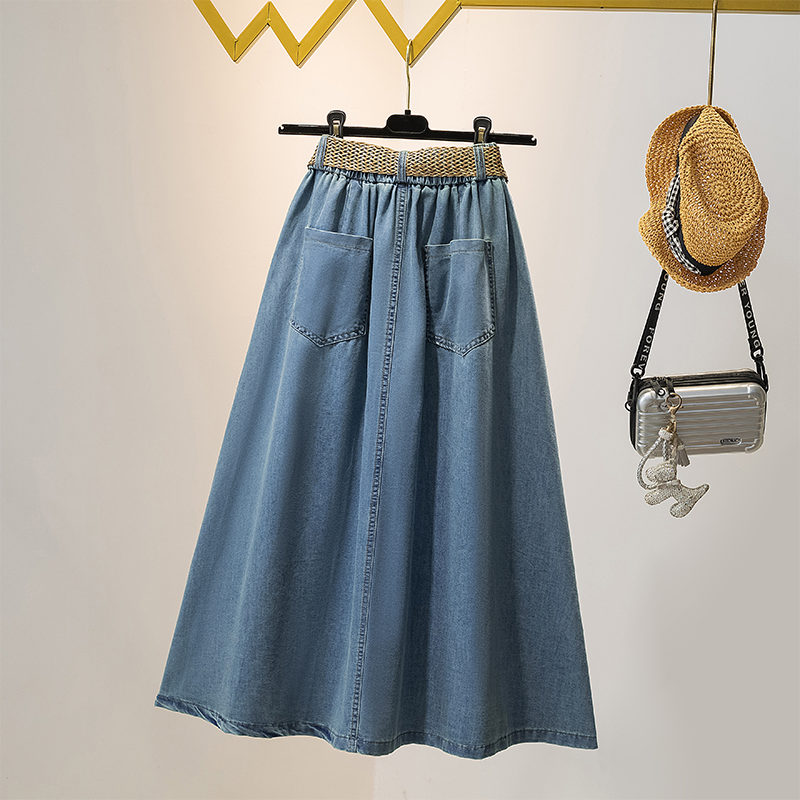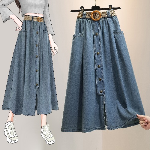 빅사이즈 여성용 데님 스커트, 하이웨이스트 롱 스커트, 뚱뚱한 여성, 배형 체형, 슬림핏 캐주얼 스커트스토어 가기