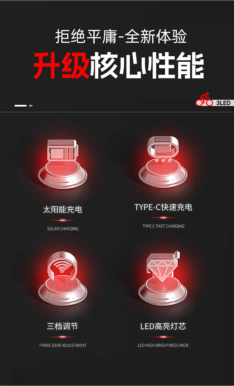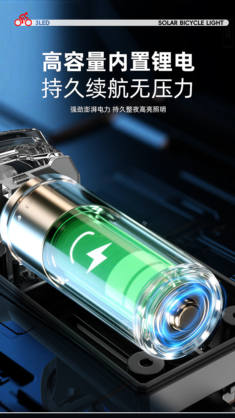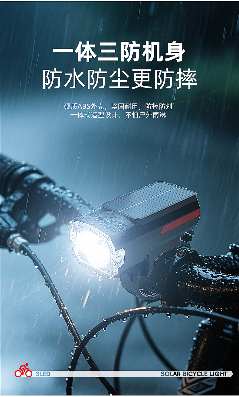 새로운 자전거 라이트 태양열 충전식 헤드라이트 경적 산악 자전거 야간 조명 USB 충전 7588
