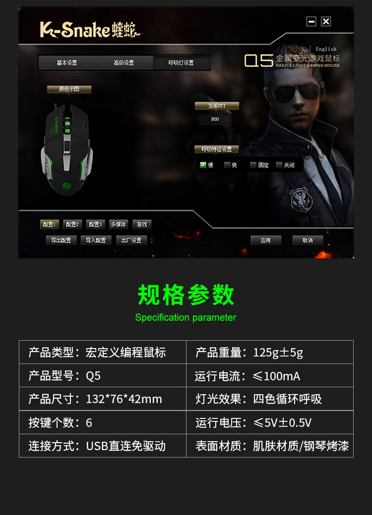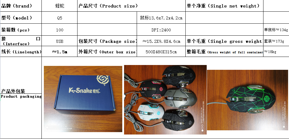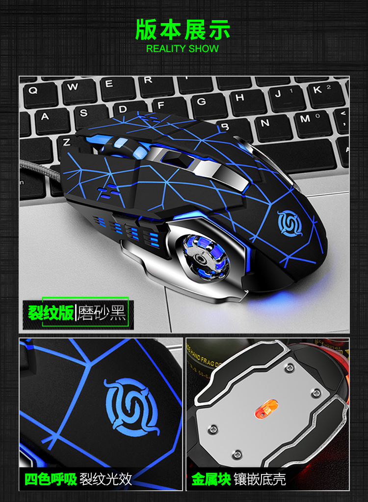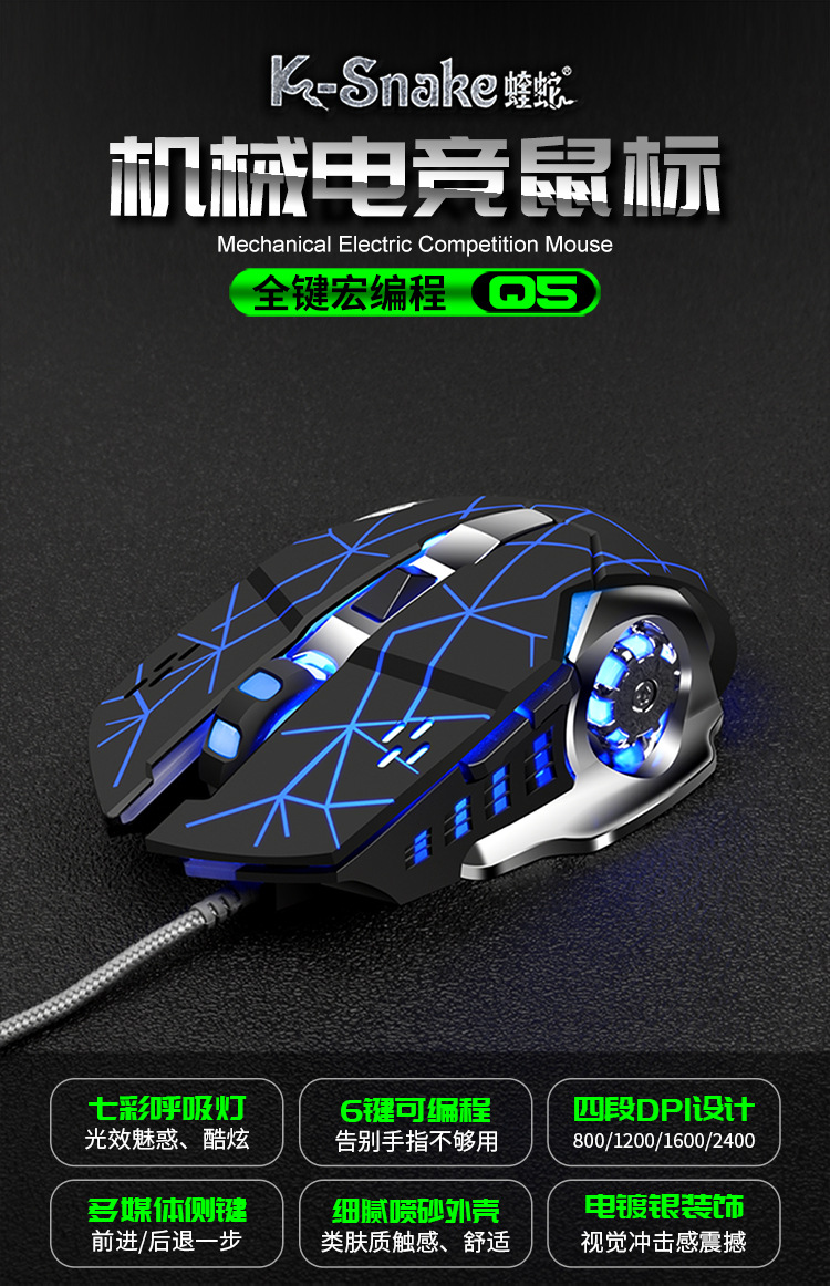 Viper Q5 메탈 플라이휠 게임 유선 마우스 데스크탑 컴퓨터 노트북 e-스포츠 USBcflol