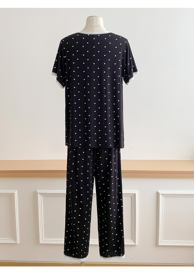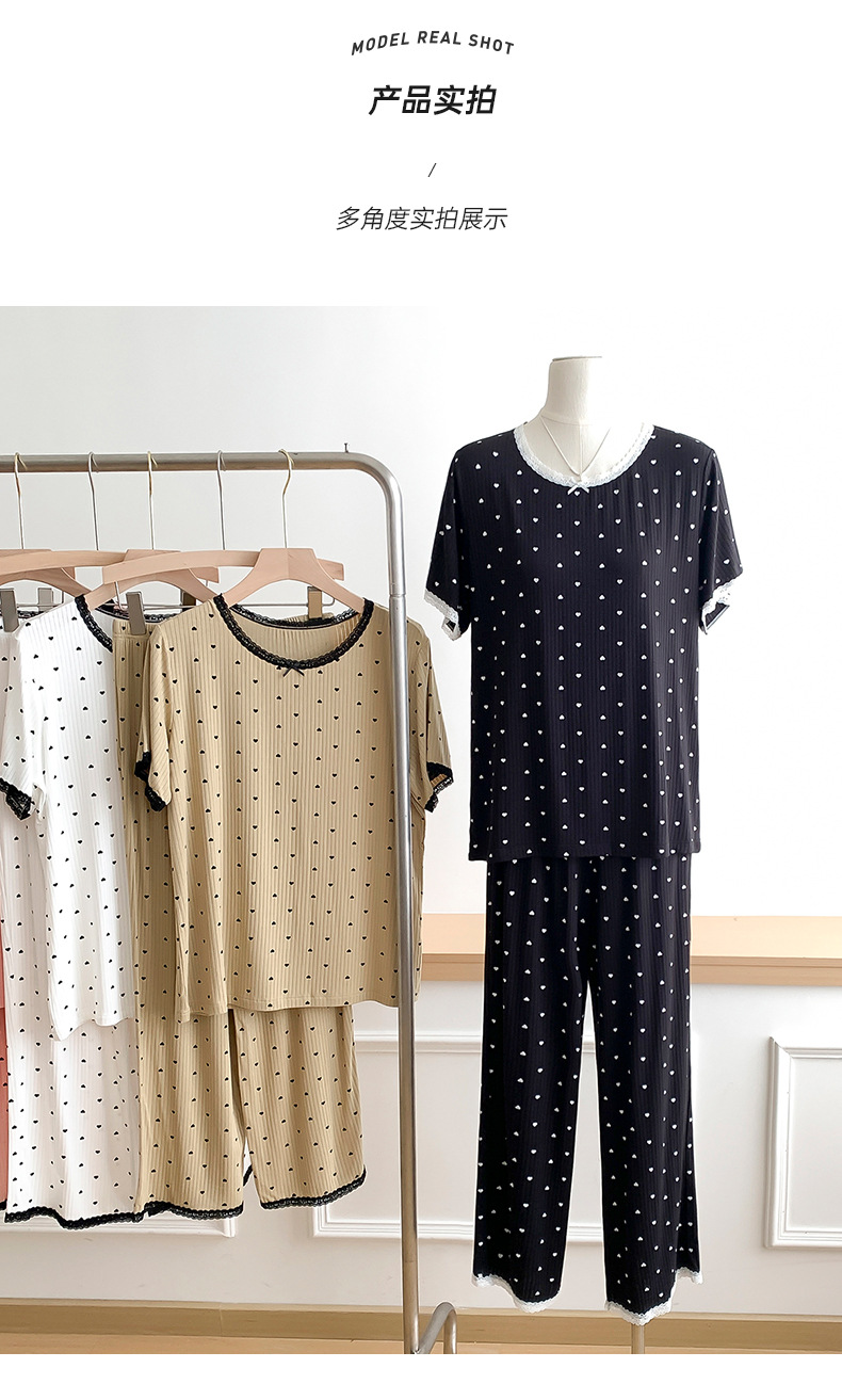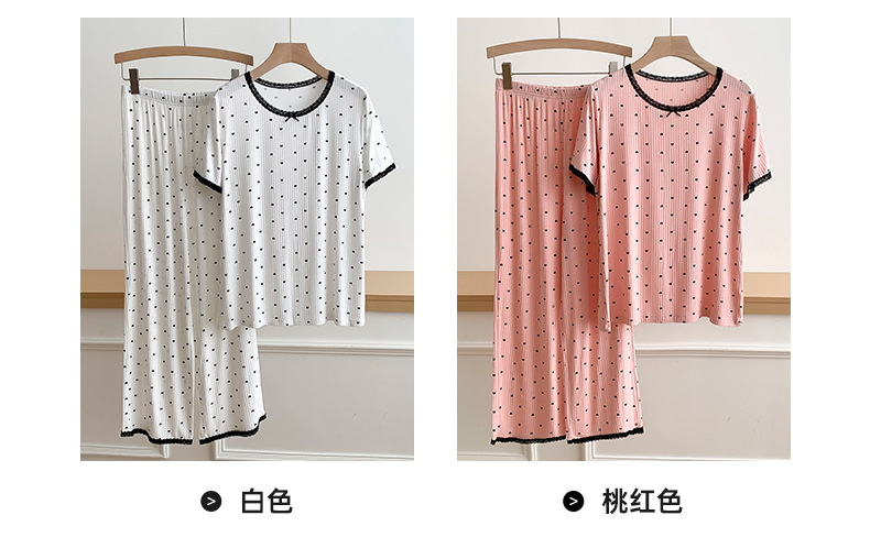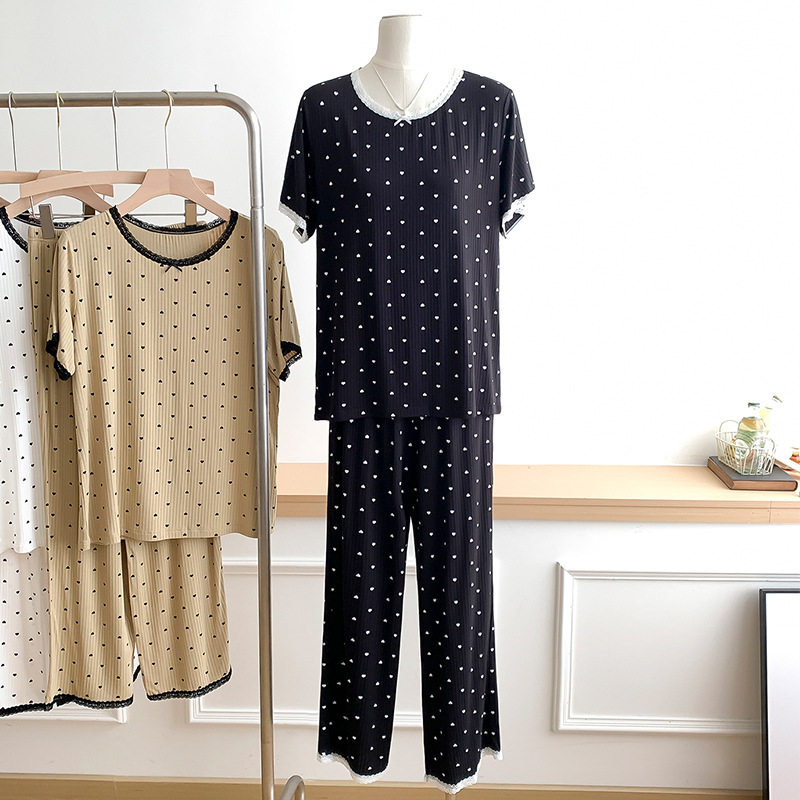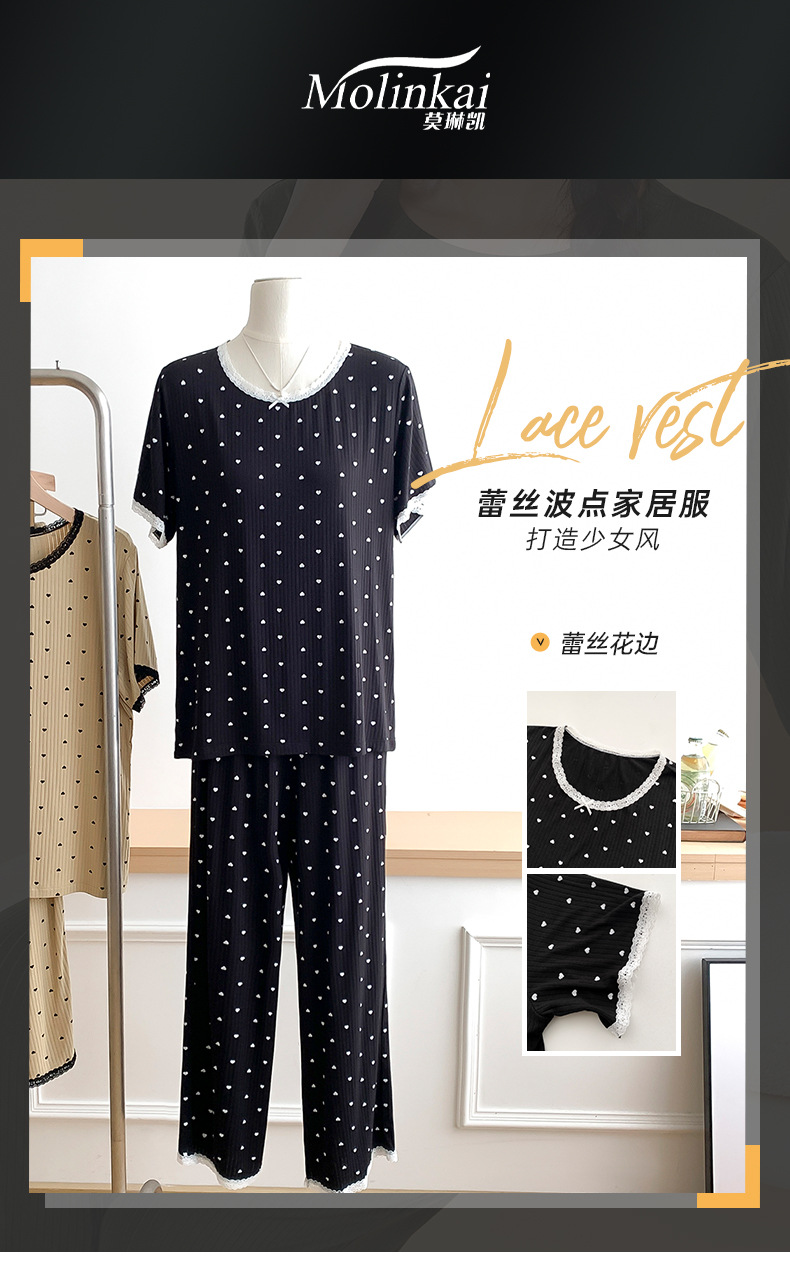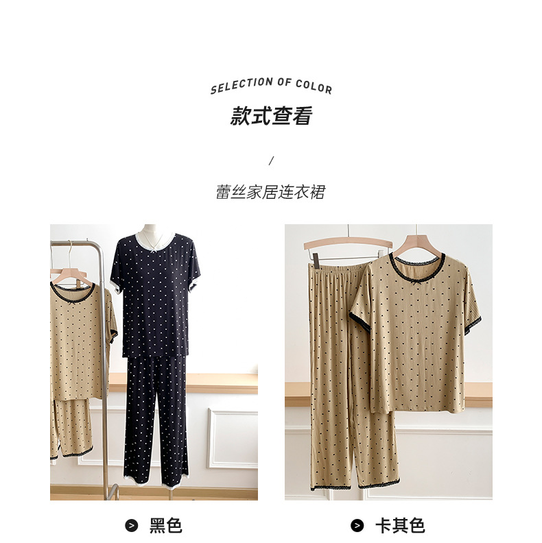 외국 무역 레이스 물방울 무늬 홈웨어, 외출복으로도 착용 가능한 얇은 잠옷 세트, 시원하고 루즈한 소녀 스타일 투피스 세트스토어 가기