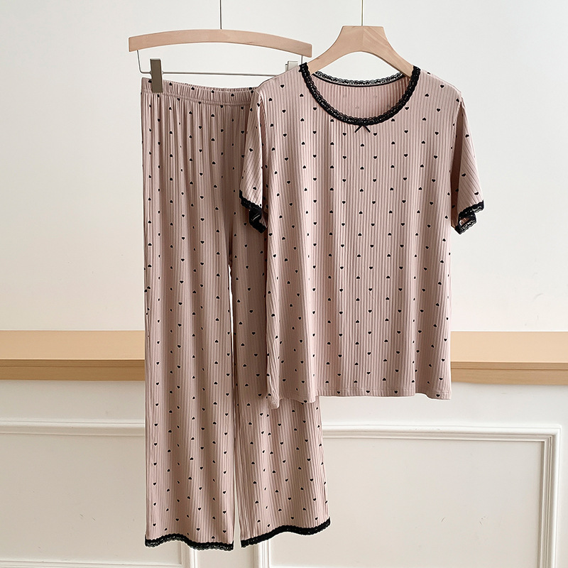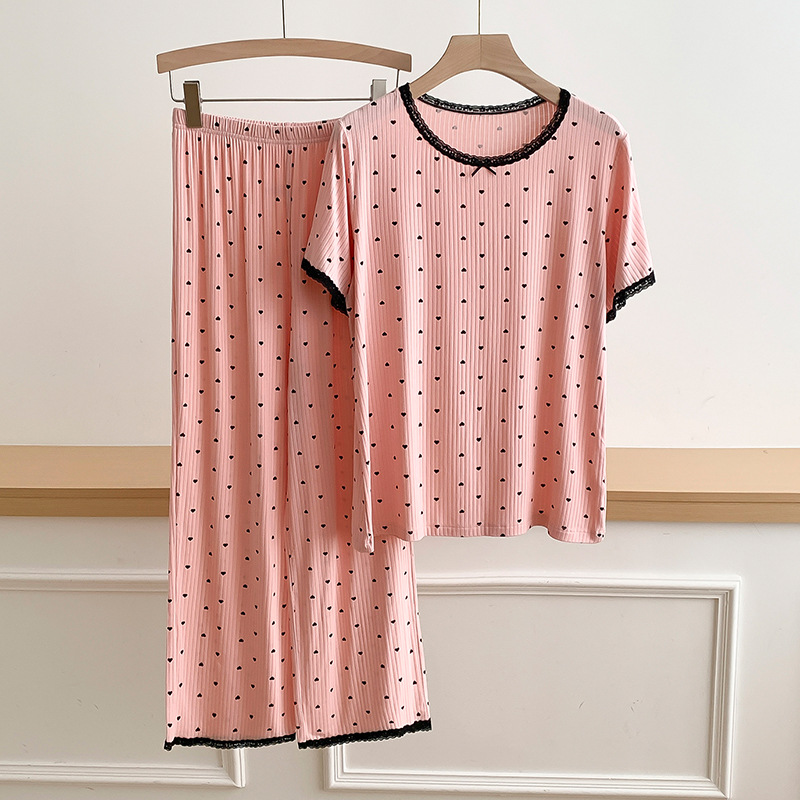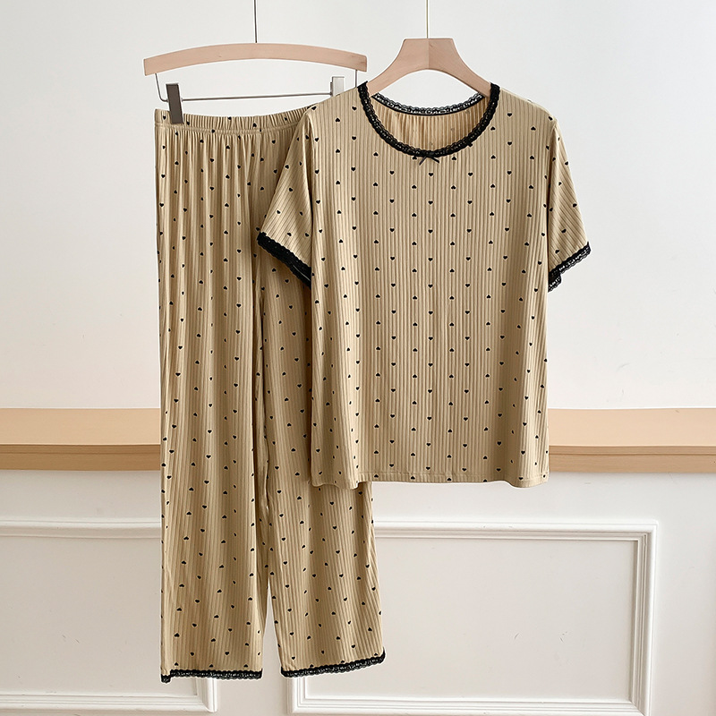 외국 무역 레이스 물방울 무늬 홈웨어, 외출복으로도 착용 가능한 얇은 잠옷 세트, 시원하고 루즈한 소녀 스타일 투피스 세트