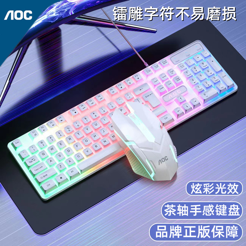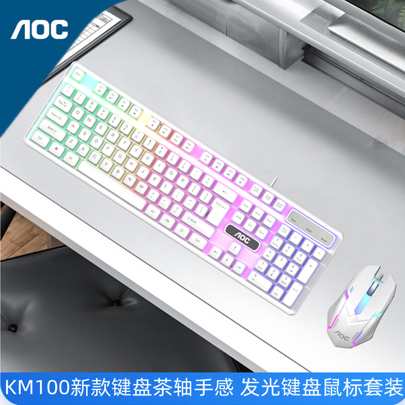 AOC KM100 유선 USB 서스펜션 발광 키보드 및 마우스 세트 컴퓨터 차 샤프트 느낌 사무실 게임 키보드