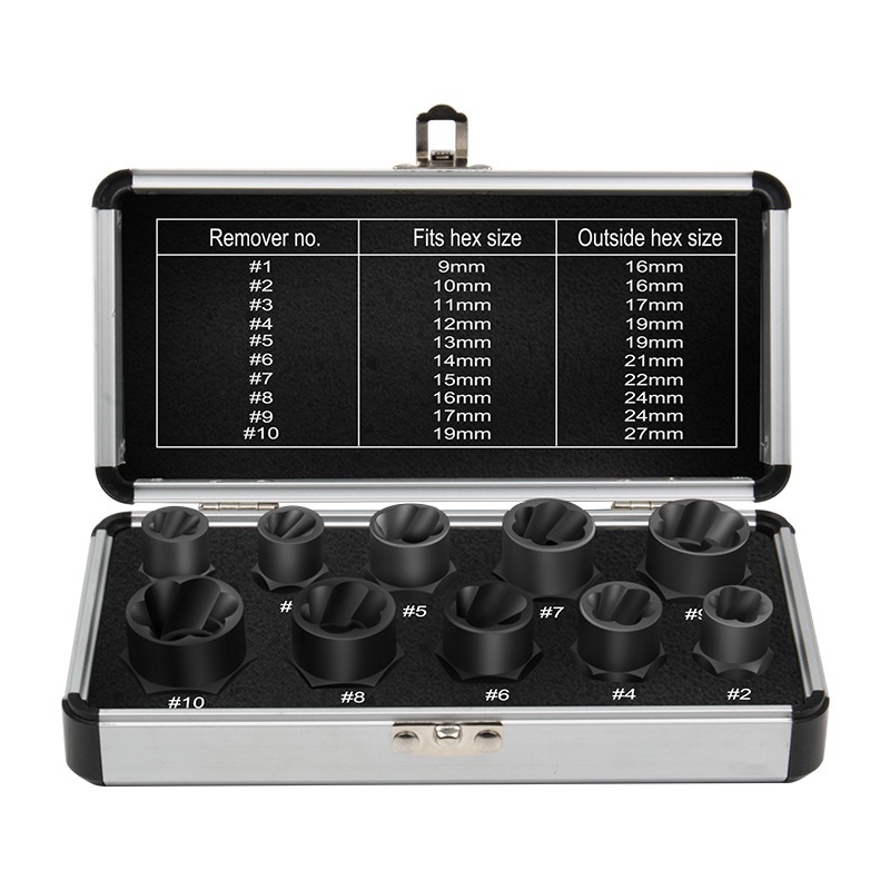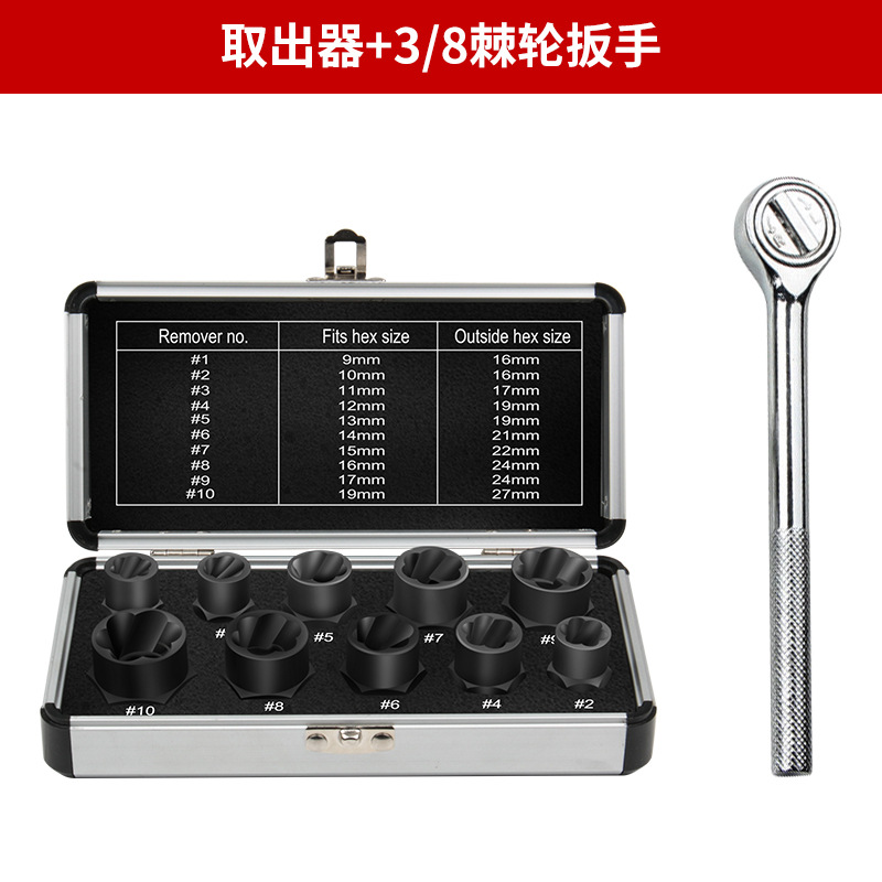 • 너트 추출기 알루미늄 상자 10개 세트 + 3/8 래칫 렌치