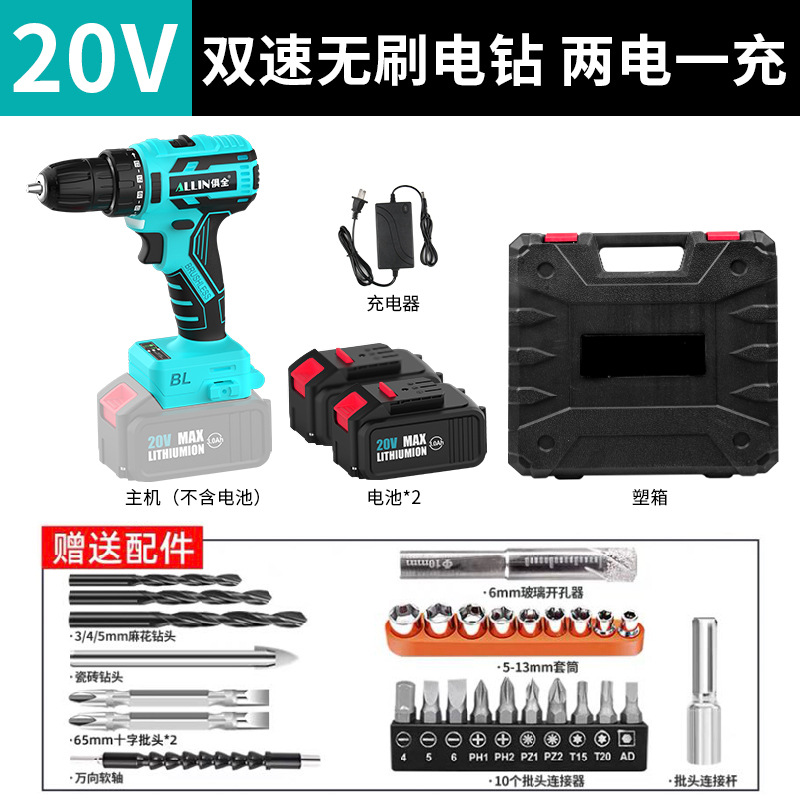 • 배터리 1개와 충전 1개가 포함된 20V 2단 브러시리스 전기 드릴 [무료 고급 액세서리]