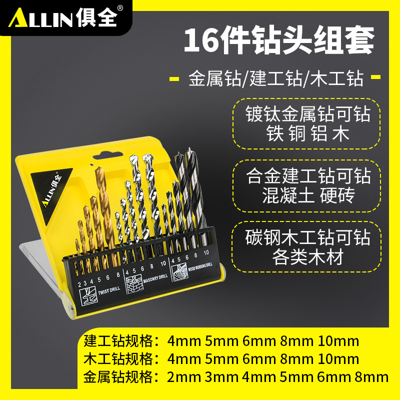 • 16개 믹스 드릴 비트 세트
