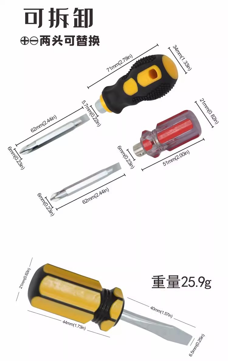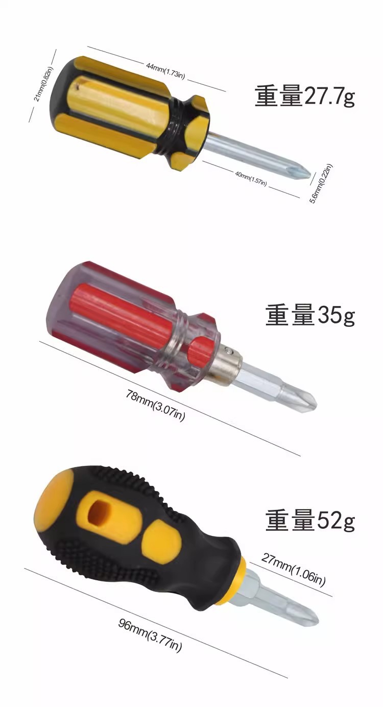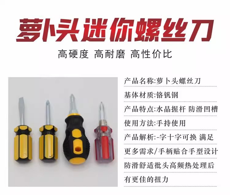 미니 단봉구형 드라이버, 십자형 겸용 단일 드라이버, 짧고 뚱뚱한 당근 머리, 자기가 있는 고무 손잡이
