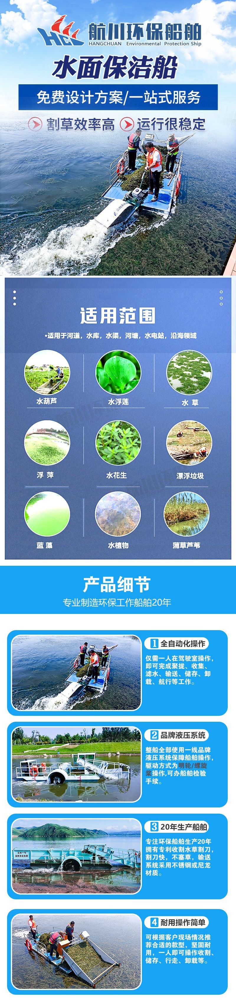 수생식물 수확기, 수생식물 수거선, 수중 수초 수거기, 항천 잔디 깎는 선박 소형