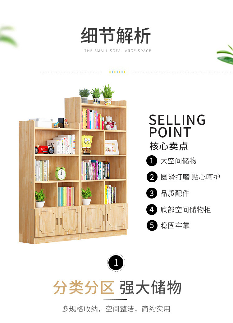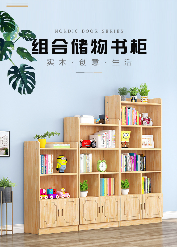 단단한 나무 책장 조합 책장 거실 다층 스토리지 랙 사무실 스토리지 캐비닛 바닥 스탠딩 간단한 학생 어린이 책장스토어 가기