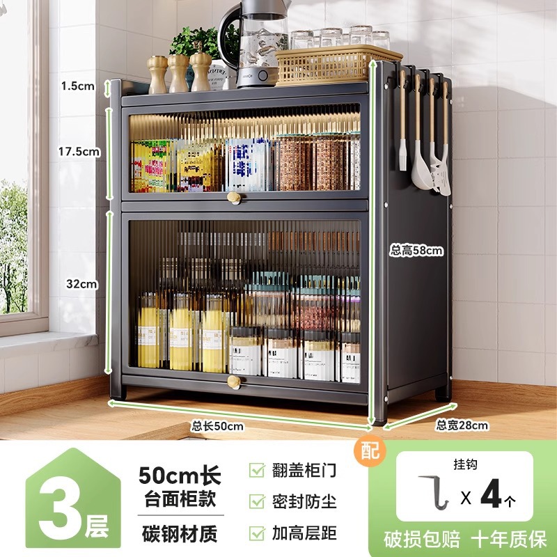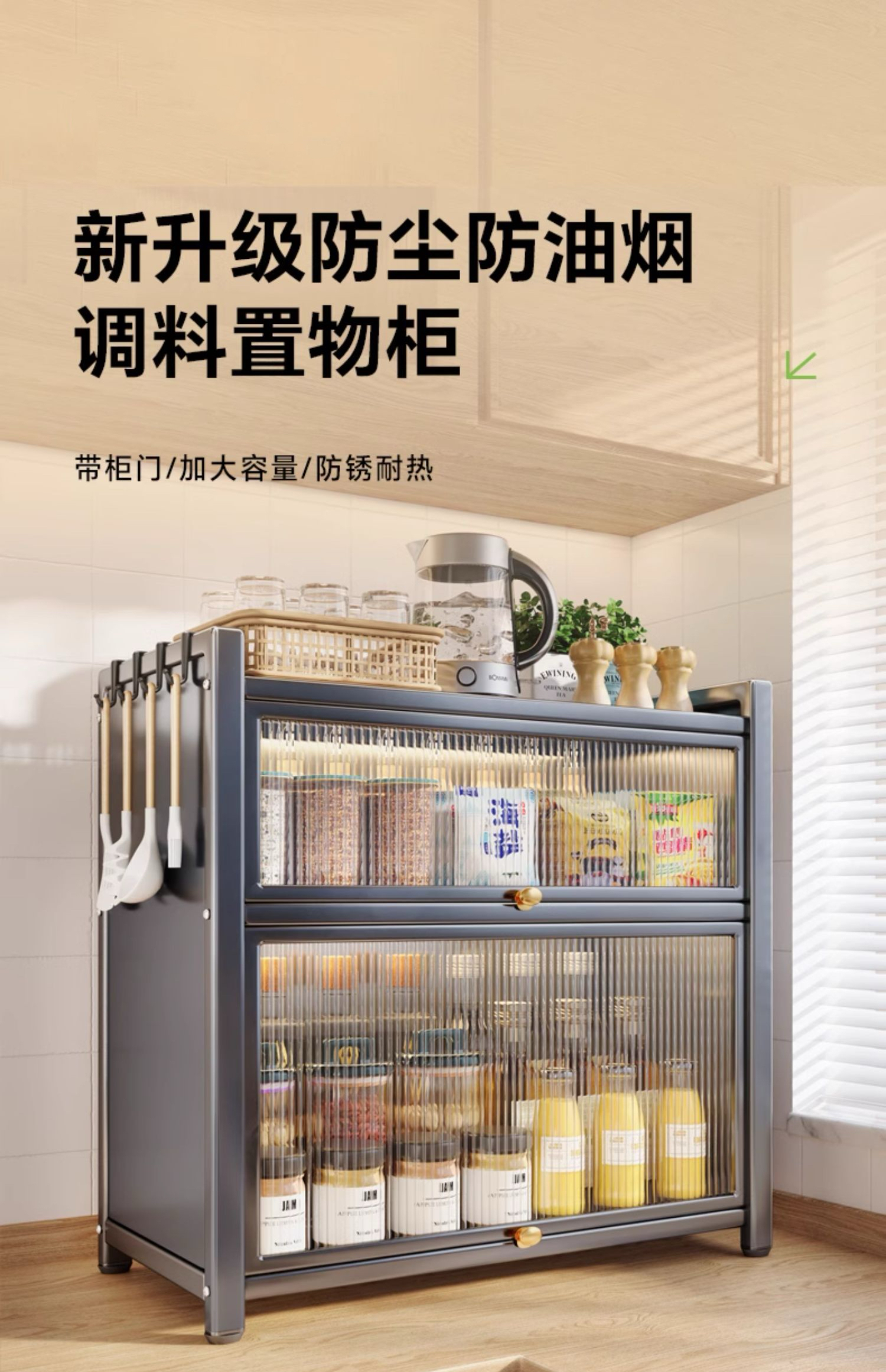 주방 조미료 보관 랙 가정용 다기능 조리대 조미료 랙 도어가있는 다층 방진 보관 캐비닛 보관 캐비닛스토어 가기