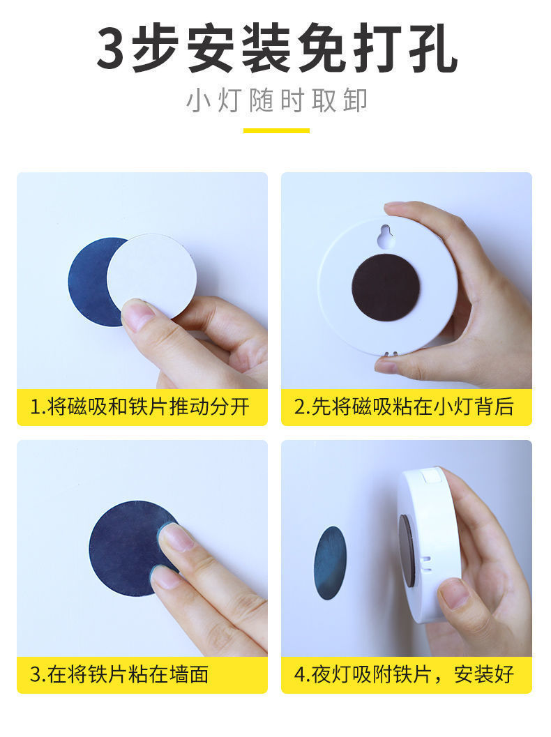 둥근 지능형 인체 센서 램프 머리맡 침실 캐비닛 계단 자동 조명 제어 자기 충전식 미니 야간 조명스토어 가기