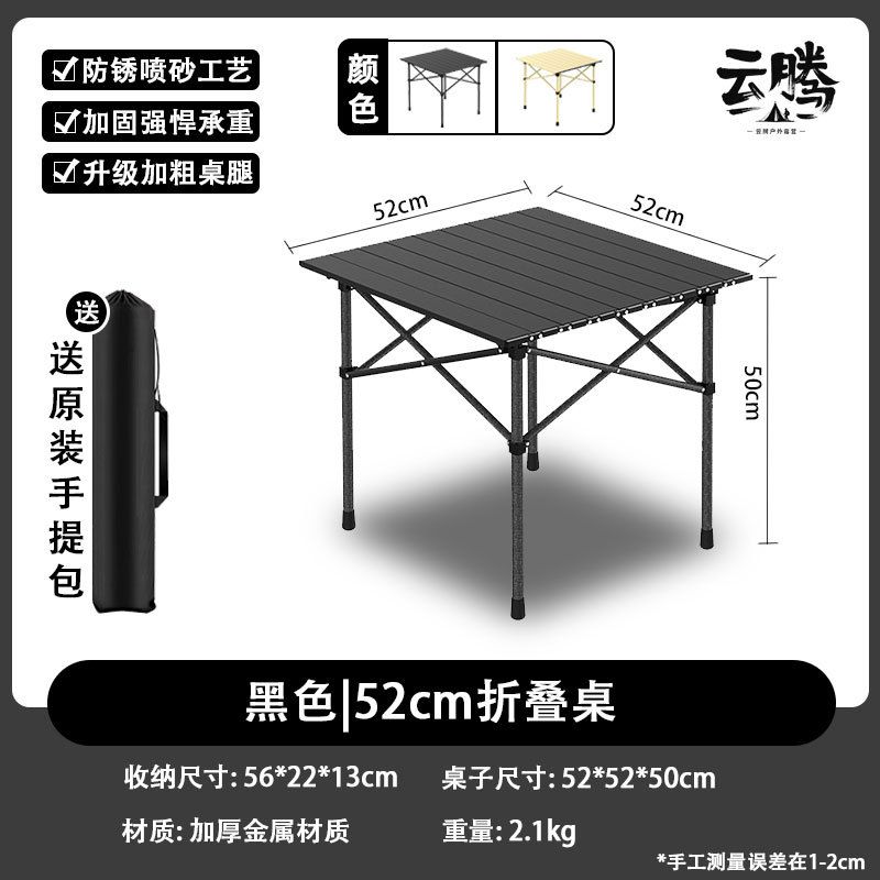 탄소강 계란말이 테이블 야외 캠핑 휴대용 바베큐 테이블 캠핑 접이식 계란말이 테이블 검정색 사각형 테이블