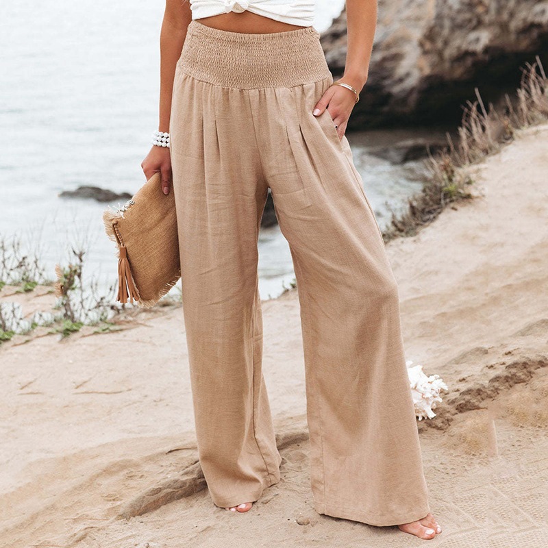 캐주얼 코튼과 린넨 루즈한 와이드 팬츠캐주얼 코튼과 린넨 여성용 와이드 팬츠스토어 가기