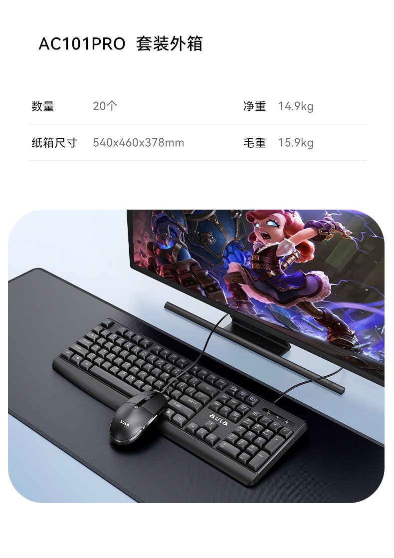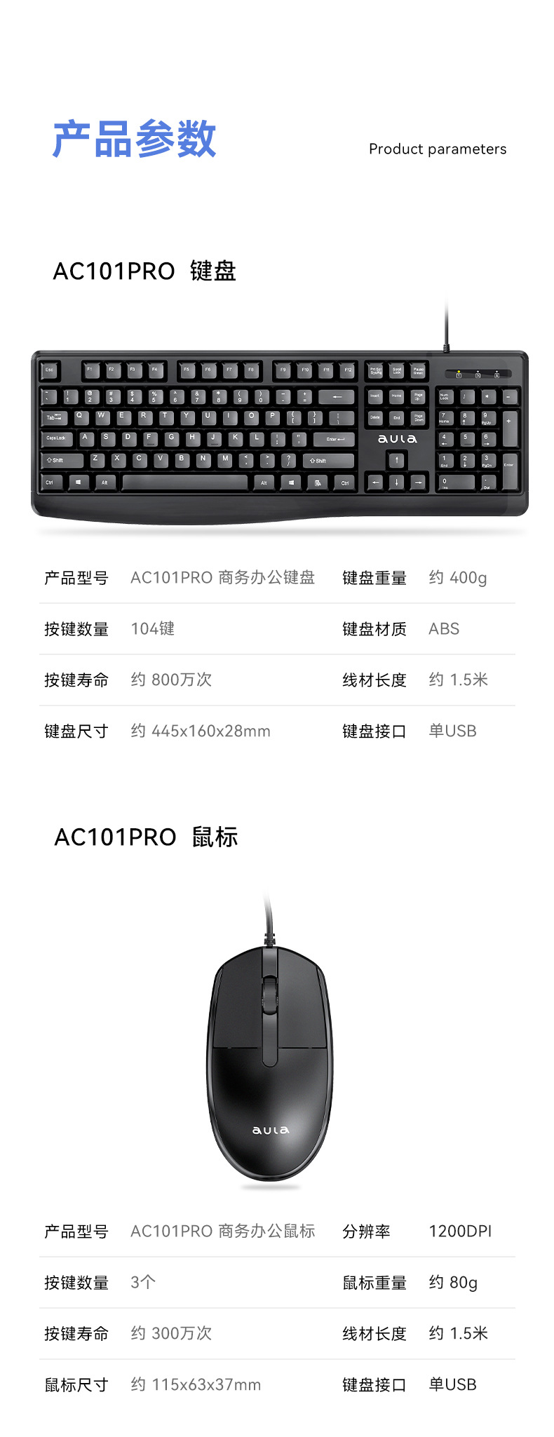Wolf Spider AC101PRO 유선 키보드 및 마우스 세트 노트북 데스크탑 컴퓨터 오피스 홈 키보드 및 마우스 비즈니스스토어 가기