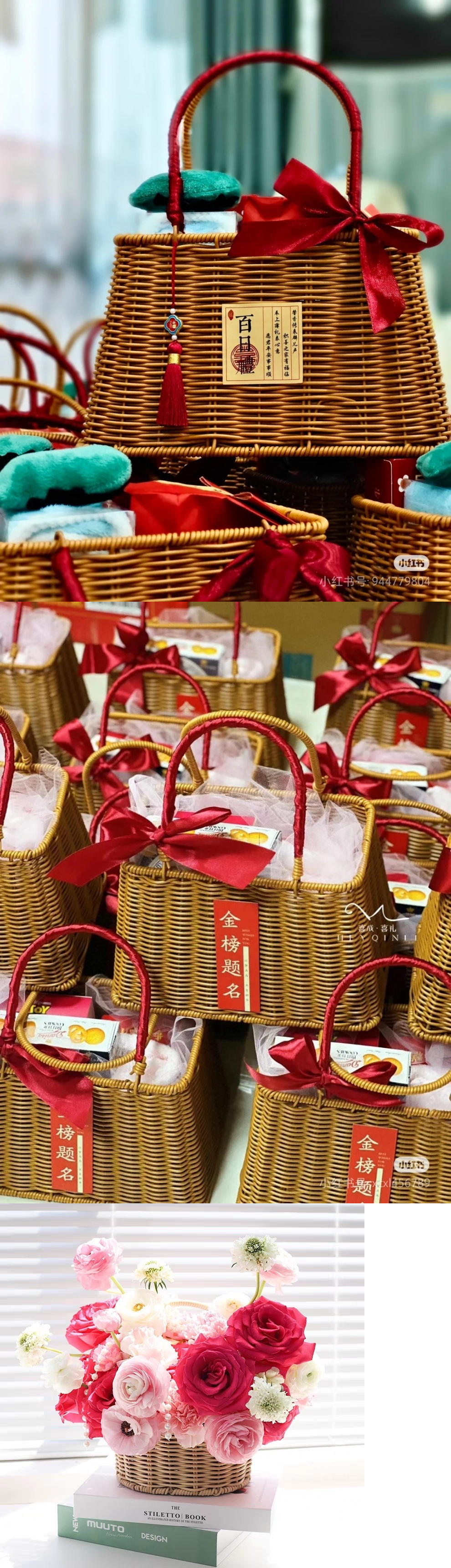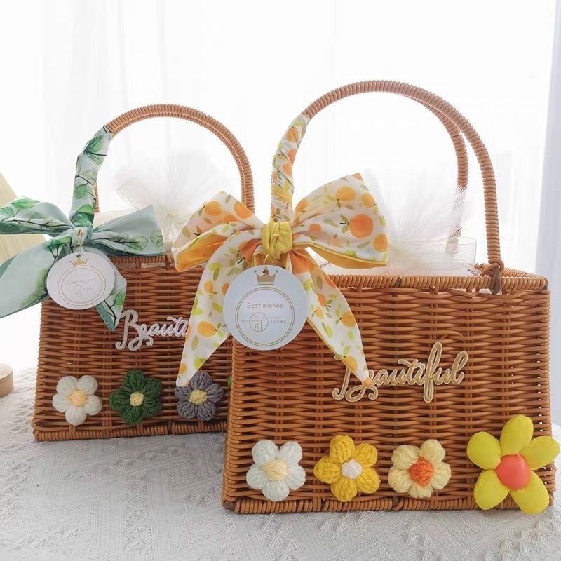 手提藤编篮子结婚伴娘伴手礼篮子轻奢礼盒野餐编织篮礼物盒ins