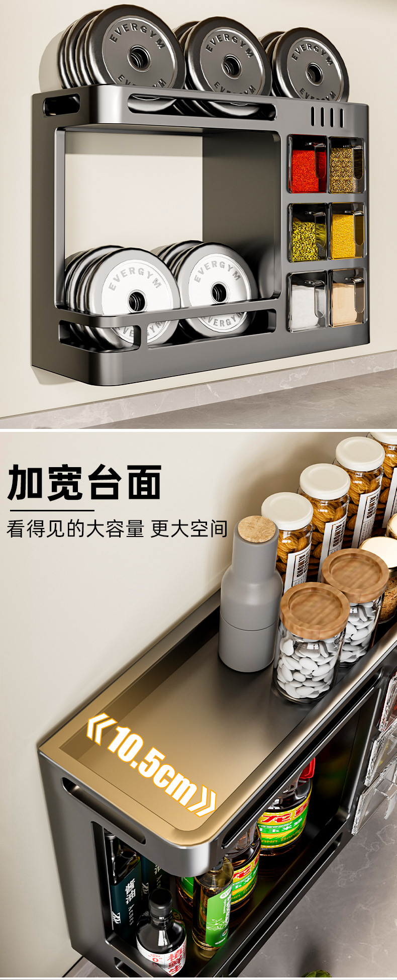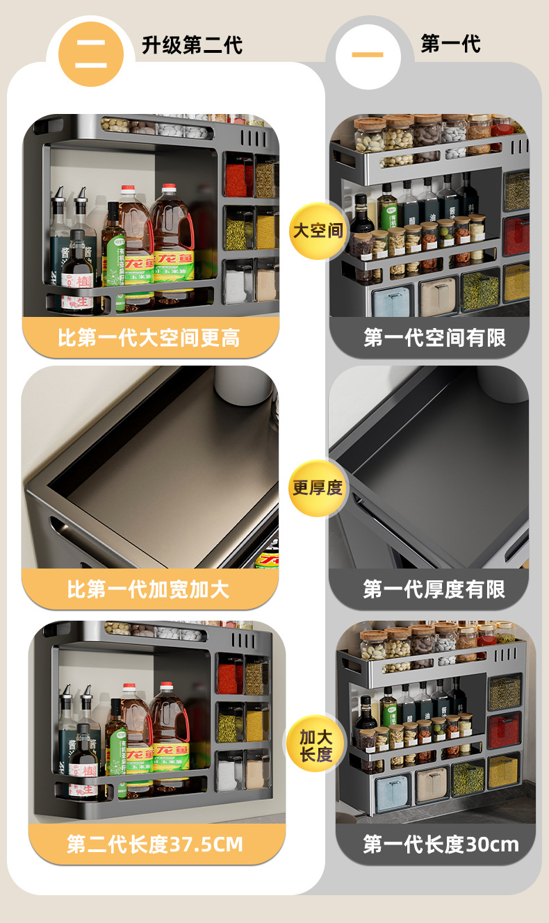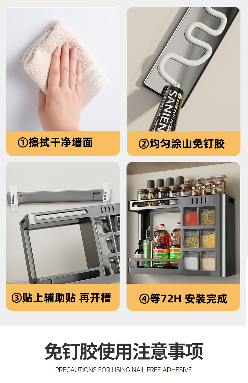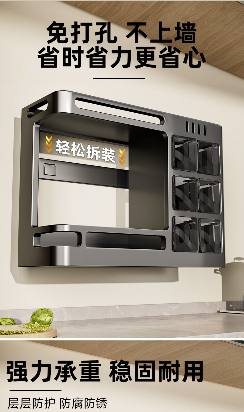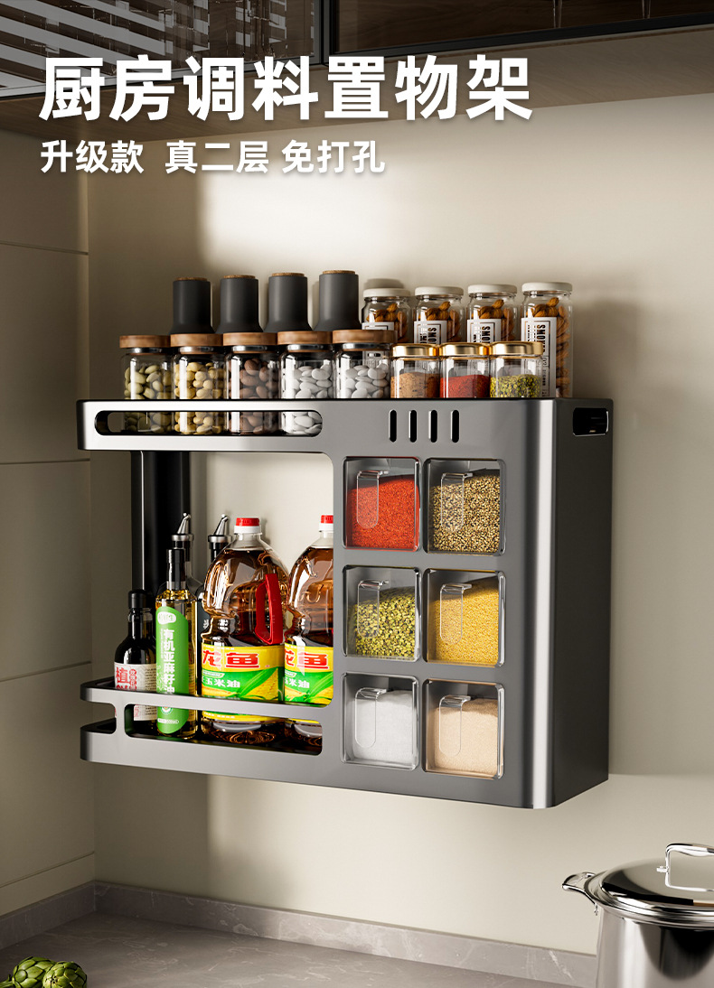 주방 수납 선반 벽걸이 형 기름, 소금, 소스 및 식초 조미료 선반 항아리 펀치없는 다기능 홈 스토리지