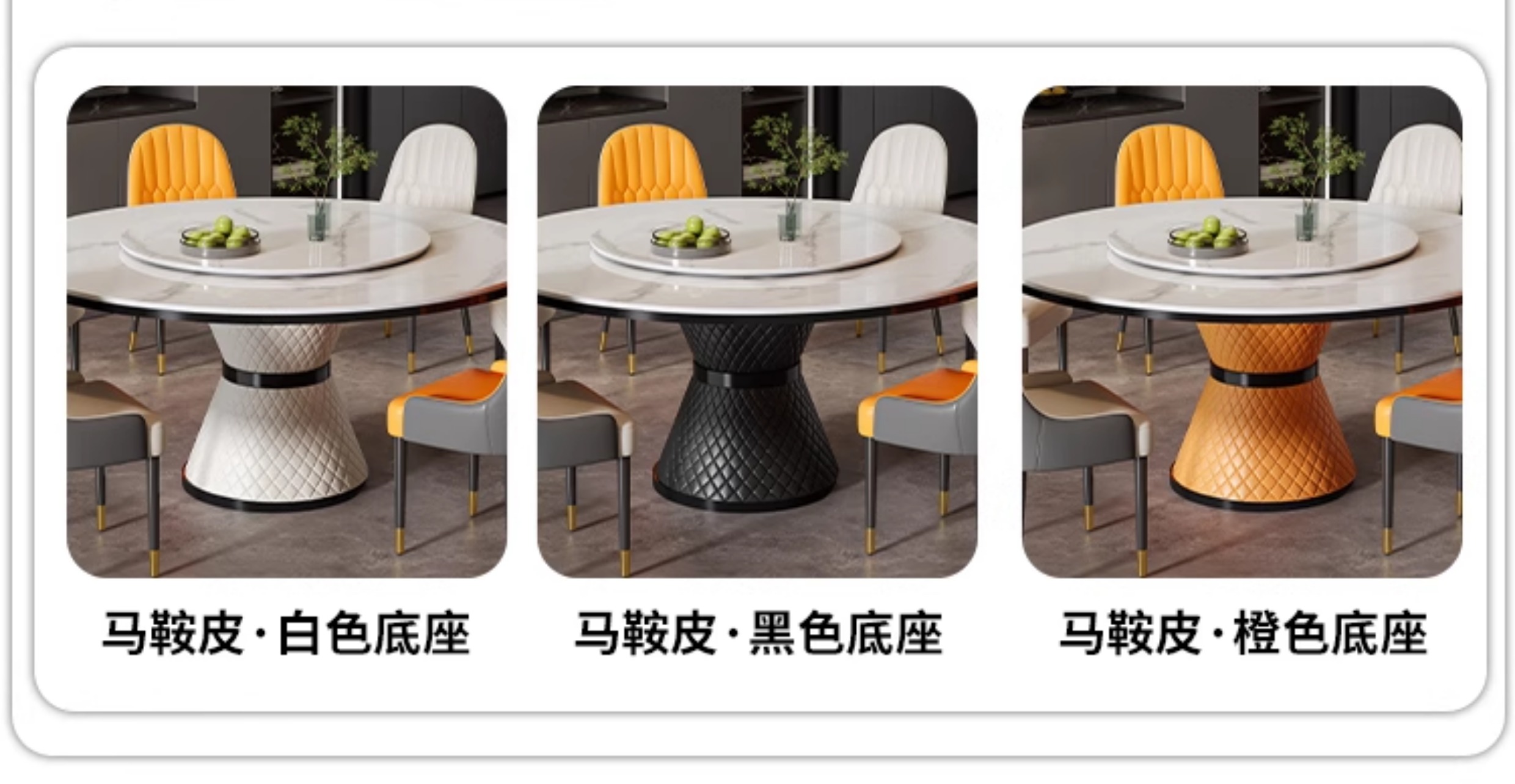 • [업그레이드된 프놈펜 모델] 원형 테이블 1.3m개 + 가죽 의자 8개 [추가 구매 시 턴테이블 무료]