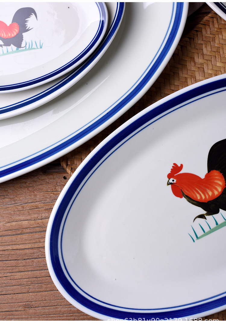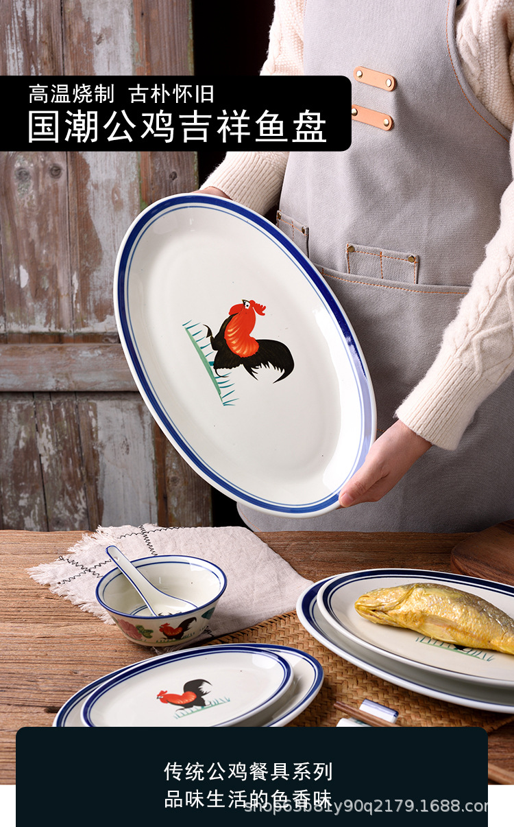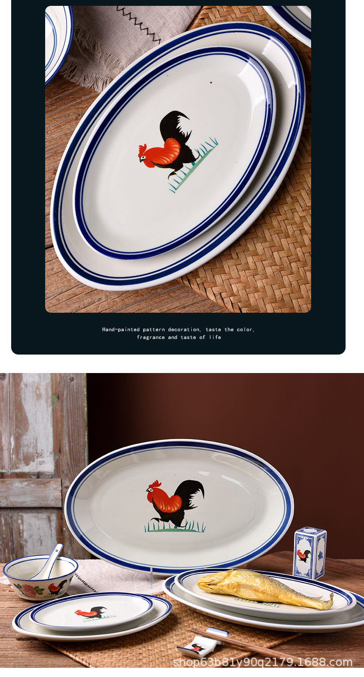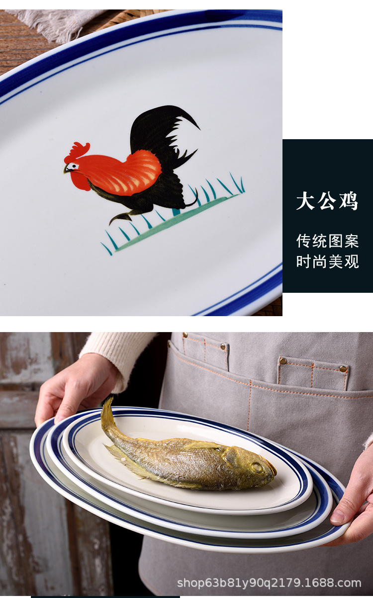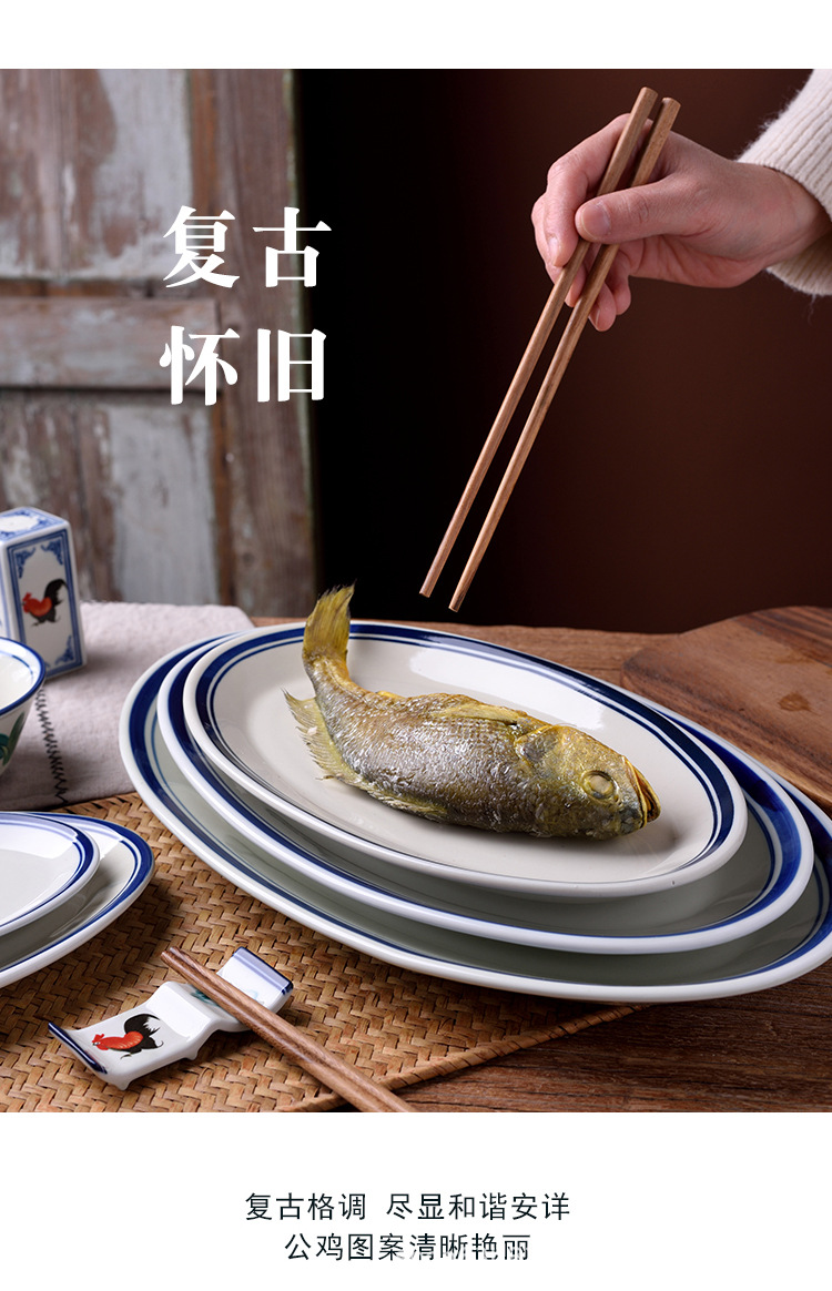 옛날 복고풍 가정용 수탉 건조 찐 롱 플레이트 레스토랑 레스토랑 대형 직사각형 플레이트 생선 찐 플레이트 상업용스토어 가기