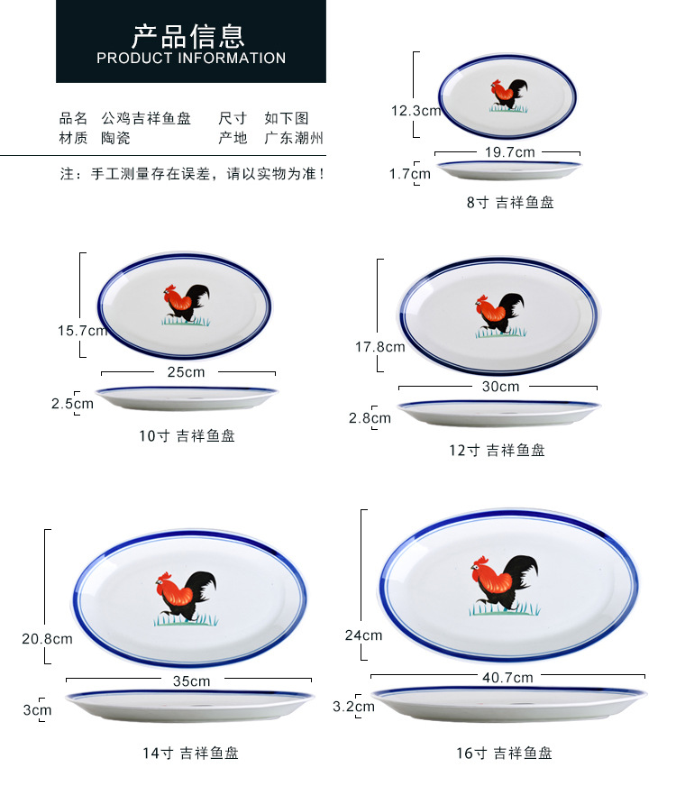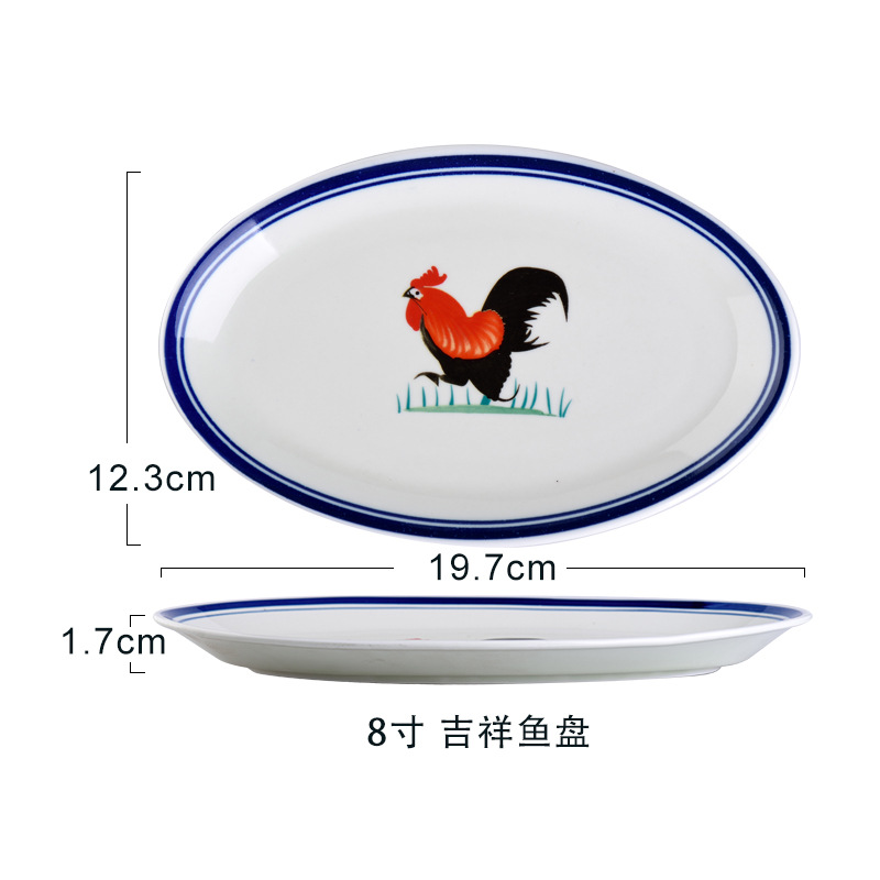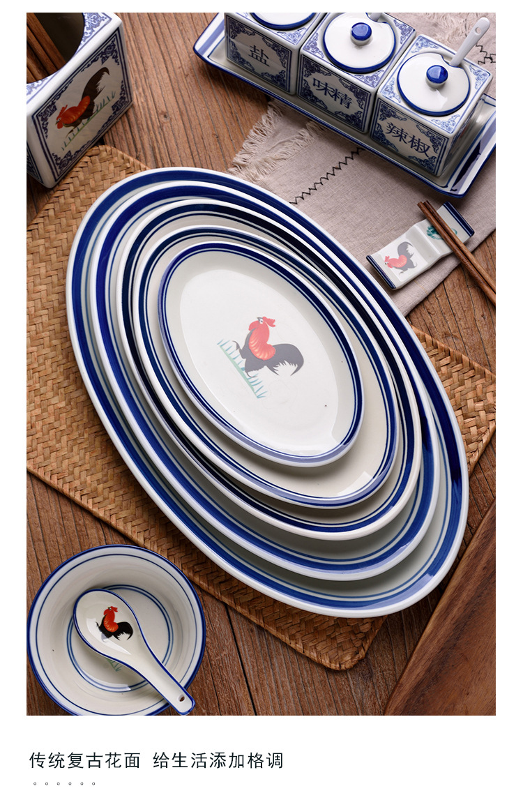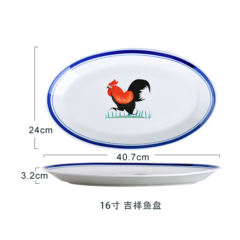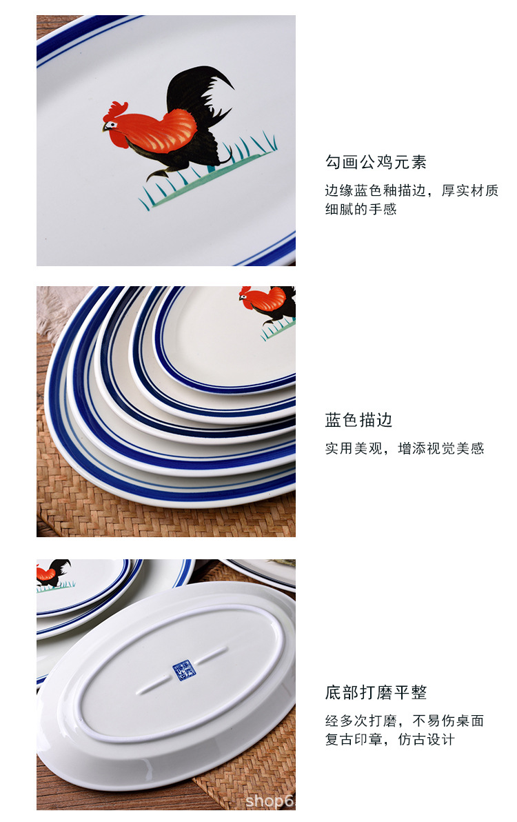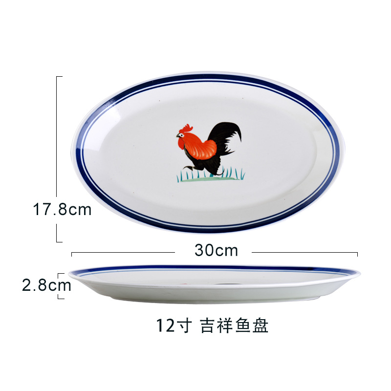 옛날 복고풍 가정용 수탉 건조 찐 롱 플레이트 레스토랑 레스토랑 대형 직사각형 플레이트 생선 찐 플레이트 상업용스토어 가기