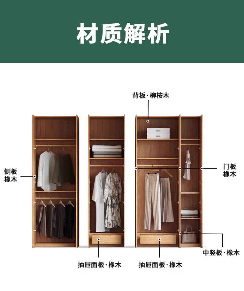 단단한 나무 오크 옷장 홈 침실 간단한 현대적인 원 도어 옷장 어린이 작은 옷장스토어 가기