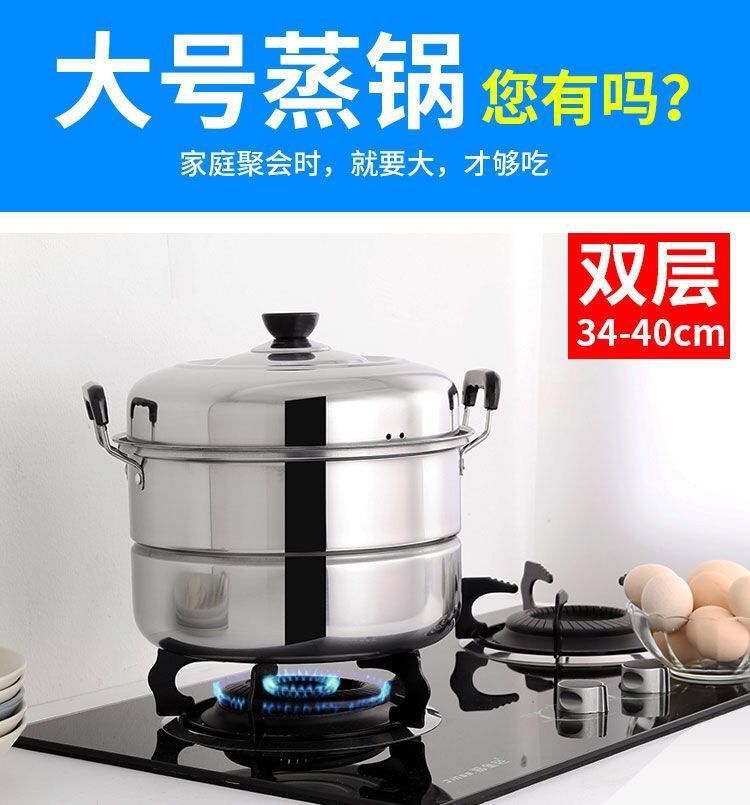 두꺼운 스테인레스 스틸 찜통 가정용 대형 찜통 생선 찜통 찐빵 전자 레인지 가스 스토브 Mingwei스토어 가기
