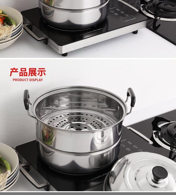두꺼운 스테인레스 스틸 찜통 가정용 대형 찜통 생선 찜통 찐빵 전자 레인지 가스 스토브 Mingwei