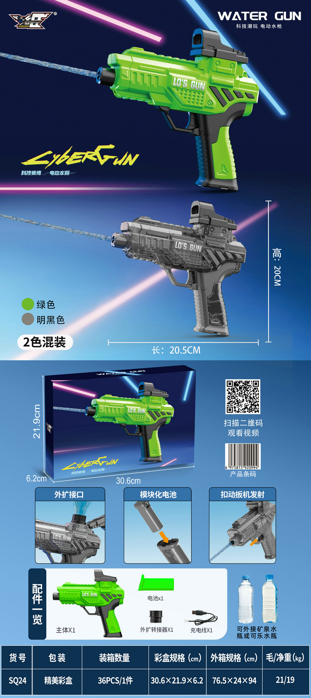 고속 발사 전기 연속 물총 SQ24 여름 풍경 래프팅 물 놀이 시뮬레이션 어린이 장난감 도매
