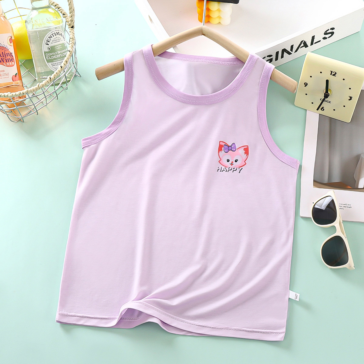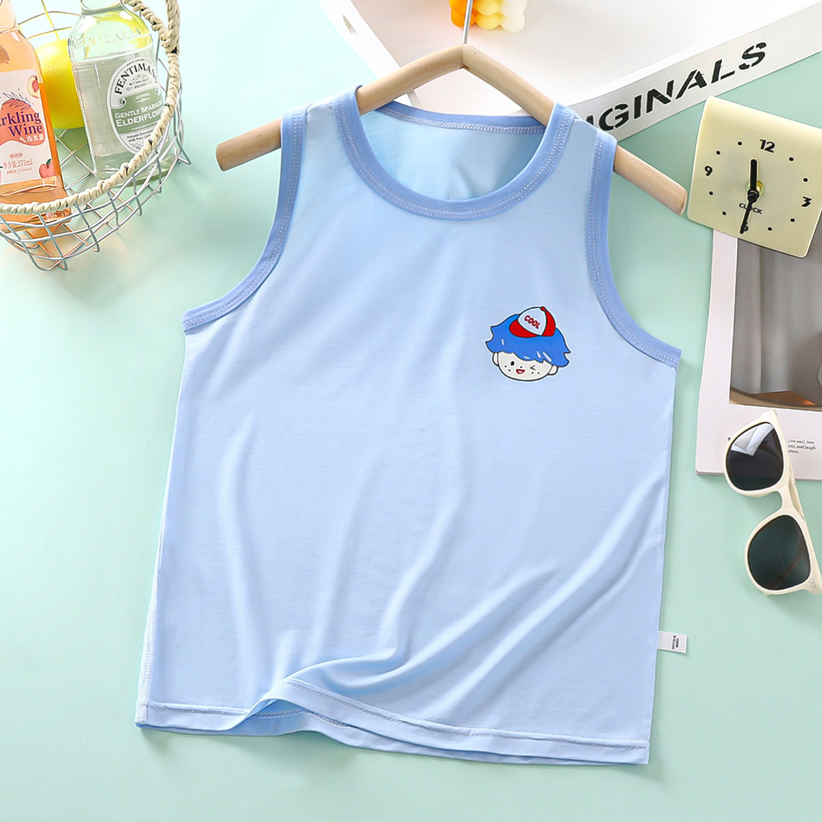 어린이 텐셀 조끼 여름 얇은 클래스 A 민소매 만화 소년과 소녀 리오셀 쿨 슬링 뼈없는 바닥