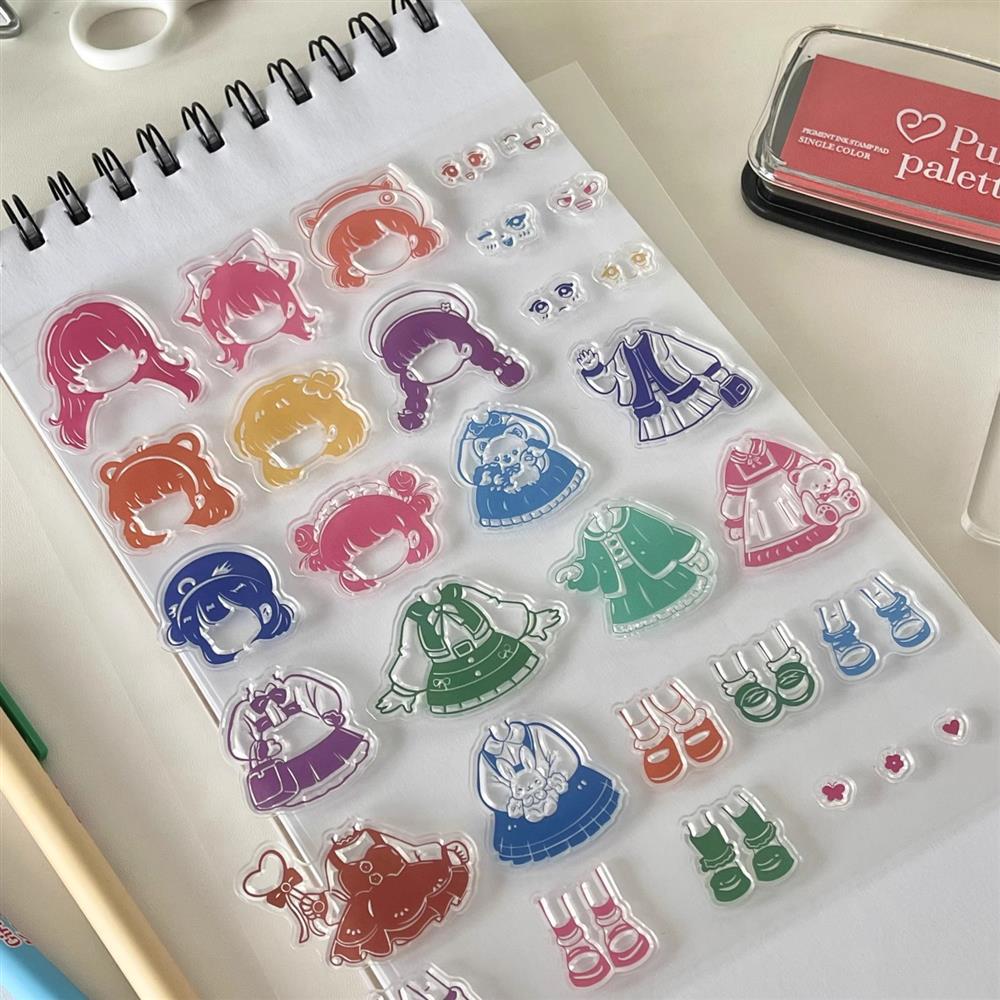 드레스 업 스탬프, DIY 만화 애니메이션, 귀여운 투명 수첩, 소년 소녀를 위한 교육용 놀이 선물스토어 가기