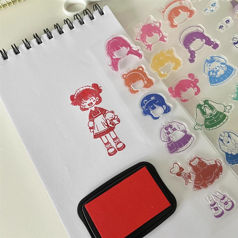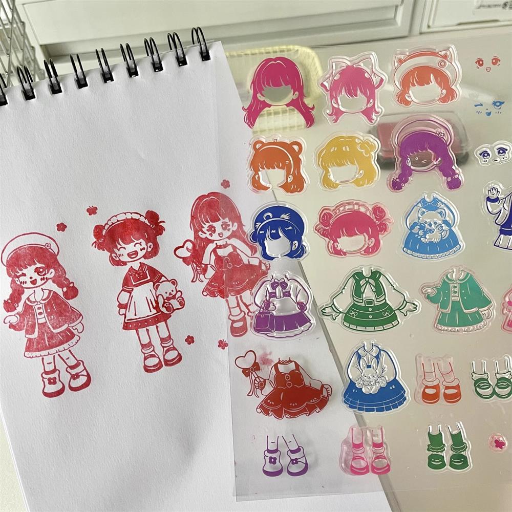 드레스 업 스탬프, DIY 만화 애니메이션, 귀여운 투명 수첩, 소년 소녀를 위한 교육용 놀이 선물