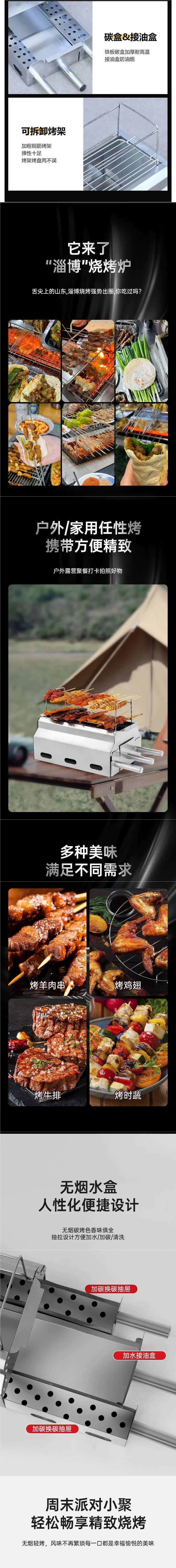 Zibo 바베큐 스토브 숯 무연 카본 그릴 특수 스토브 상업용 두꺼운 스테인레스 스틸 가정용 야외 바베큐 그릴