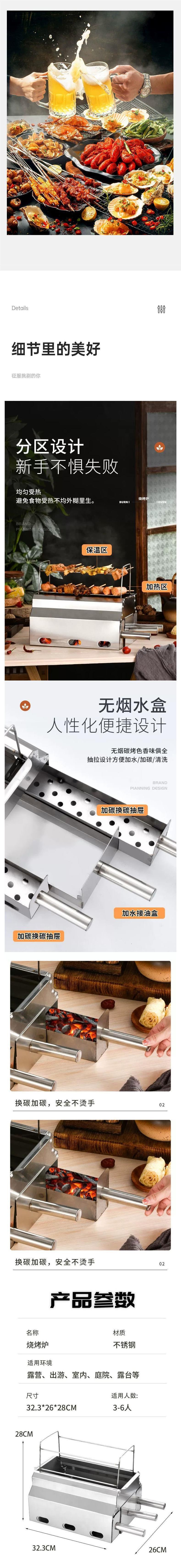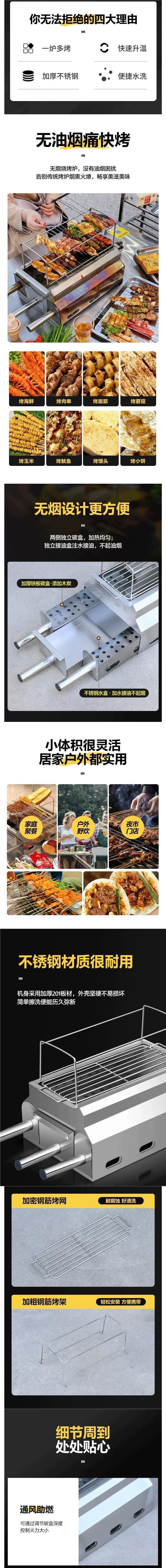 Zibo 바베큐 스토브 숯 무연 카본 그릴 특수 스토브 상업용 두꺼운 스테인레스 스틸 가정용 야외 바베큐 그릴스토어 가기