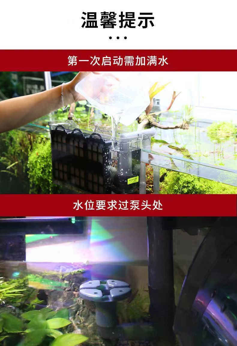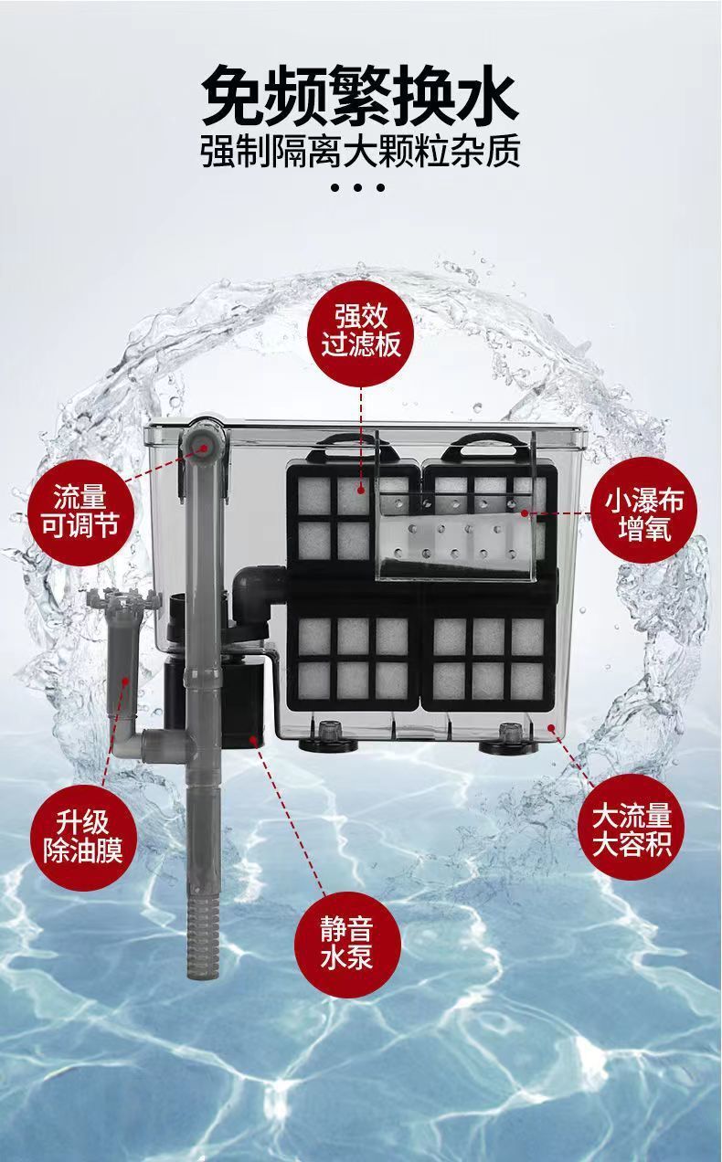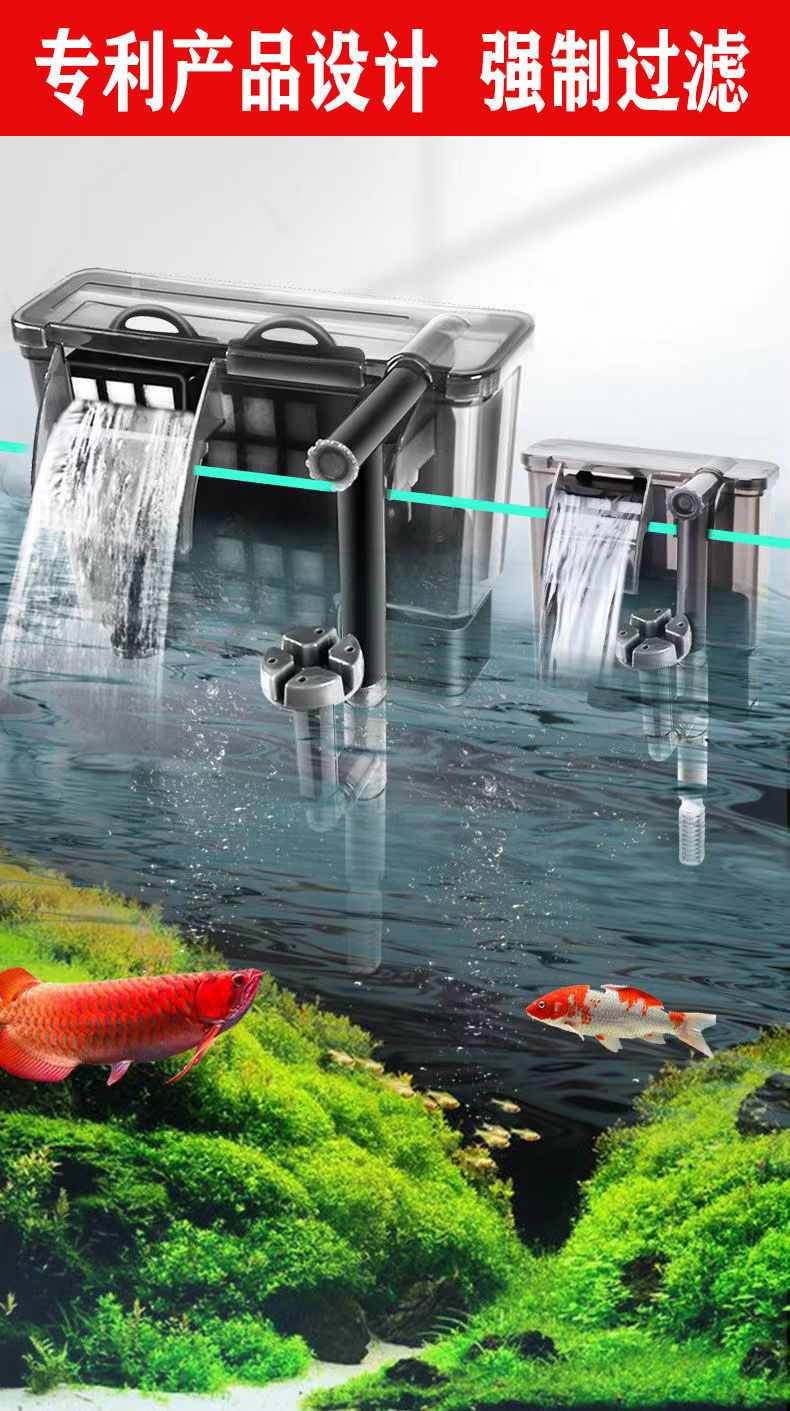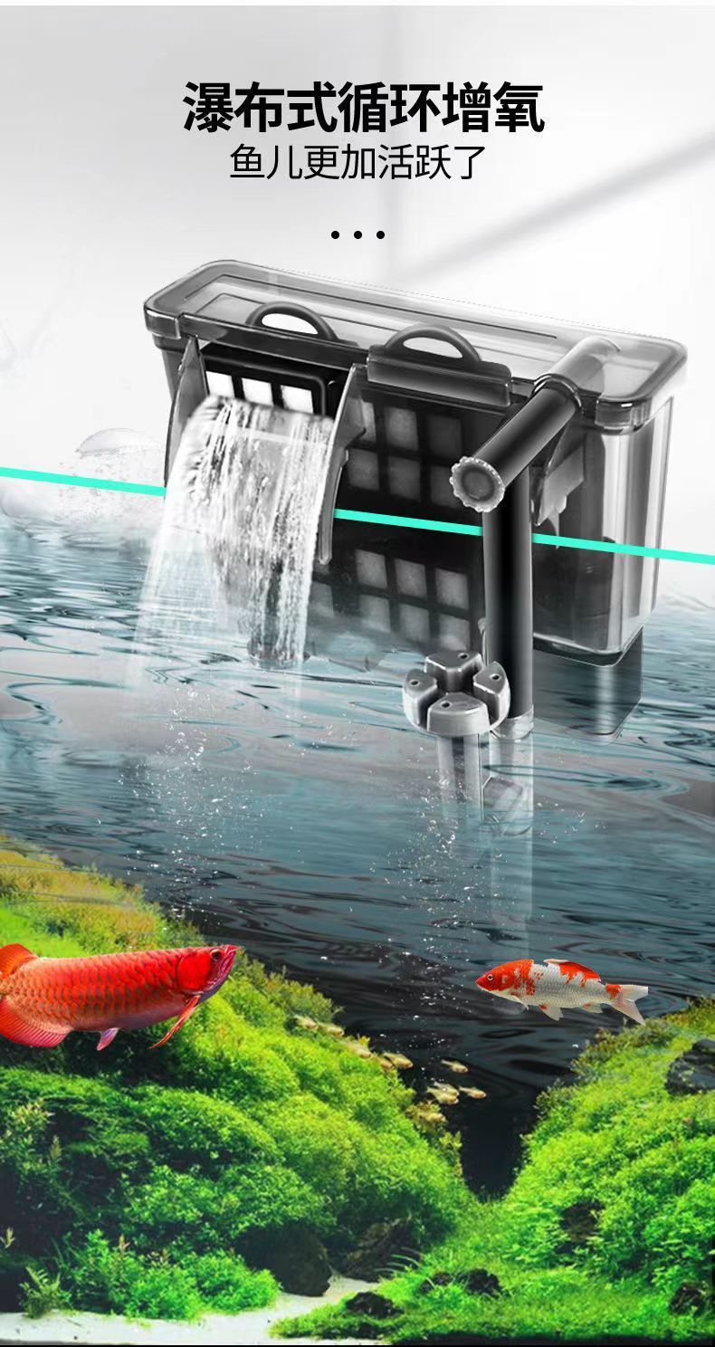 수조 필터 소형 외부 폭포 순환 정수 산소 공급 필터 3-in-1 벽걸이 형 자동 잠수정 펌프