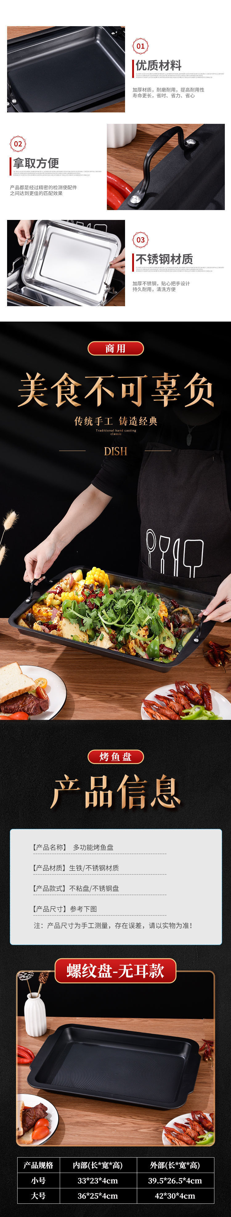 도매 상업용 생선 구이 오븐 생선 구이 접시 직사각형 생선 구이 냄비 상업용 스테인레스 스틸 깊은 접시 양각 비 스틱 구이스토어 가기