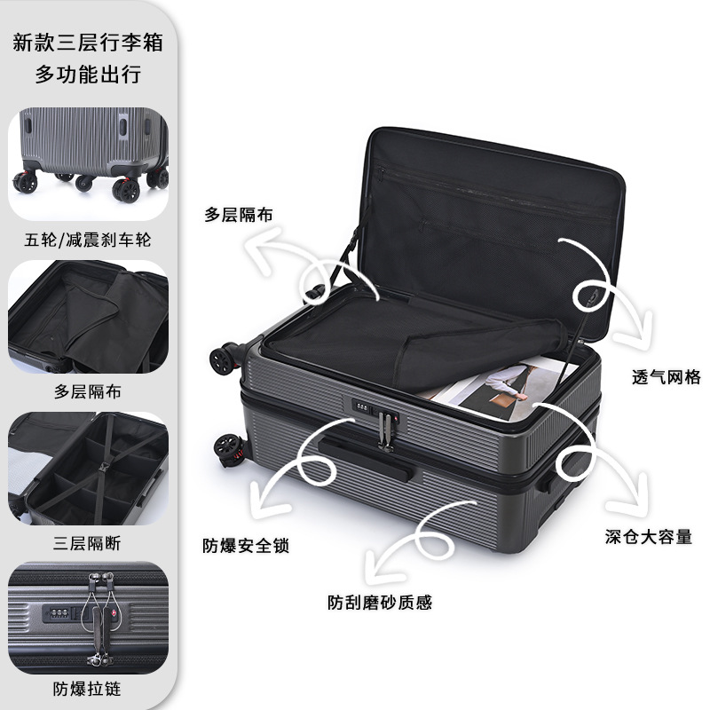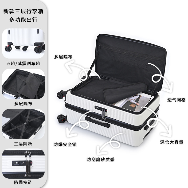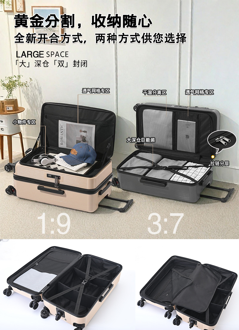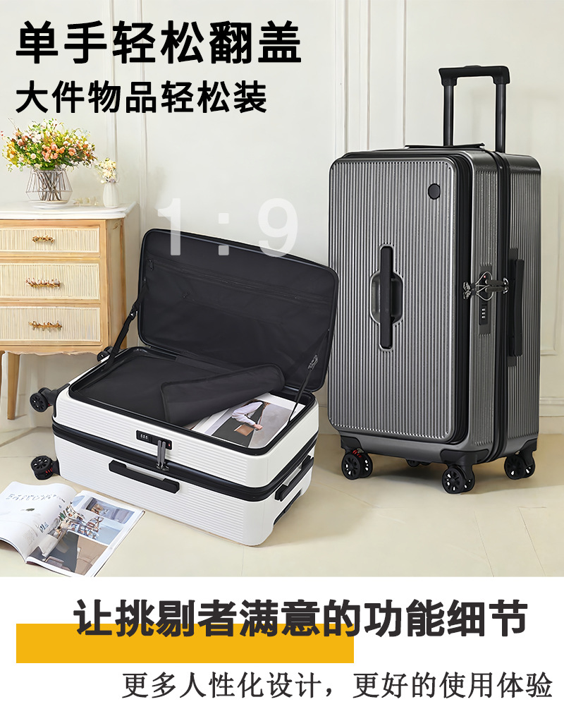 측면 개방형 평평한 여행가방 YKK 지퍼 가방 대용량 트롤리 가방 PC 소재 여행가방 3종 세트스토어 가기