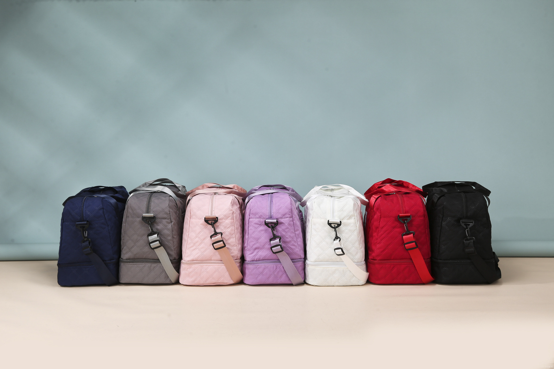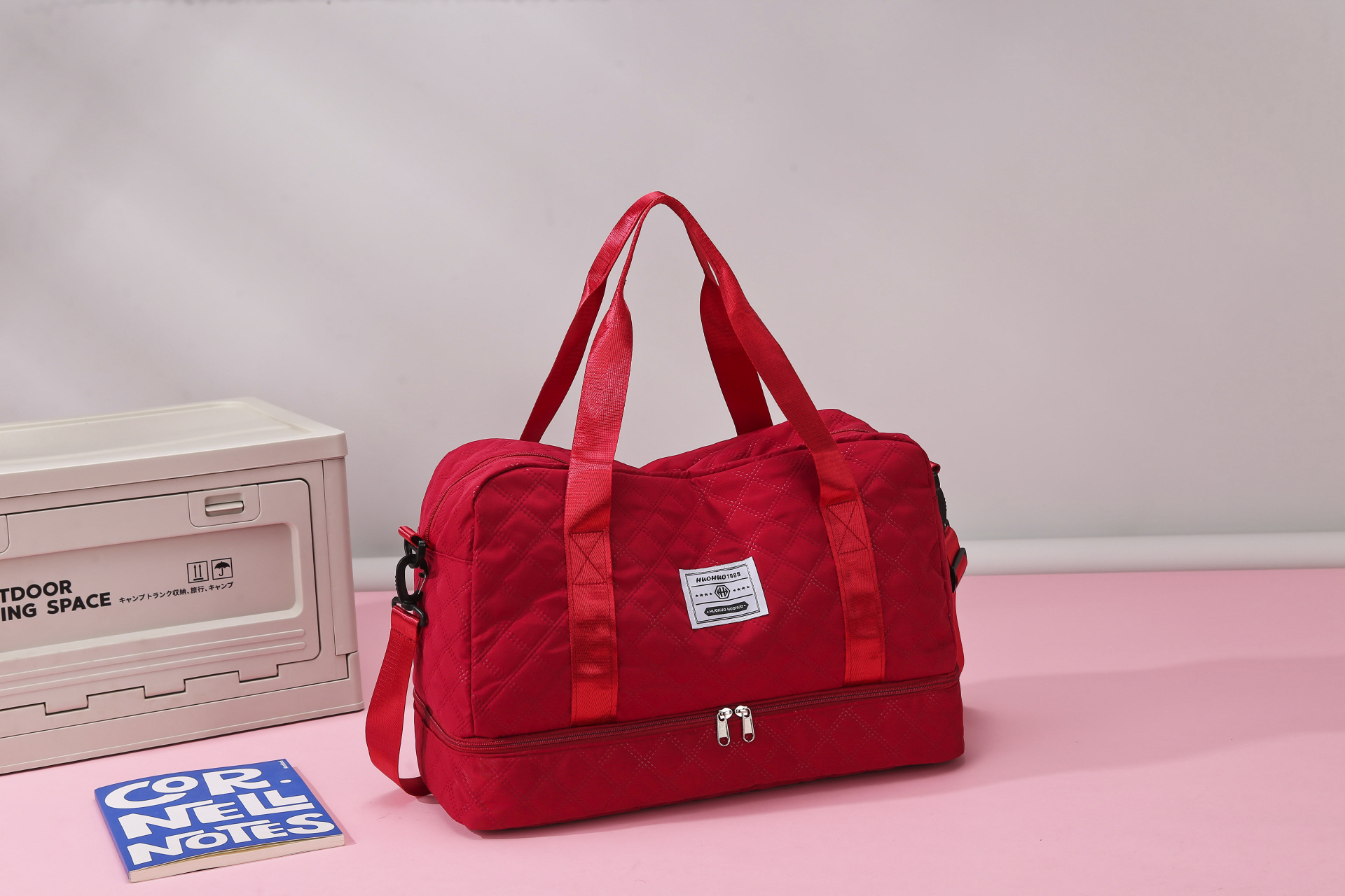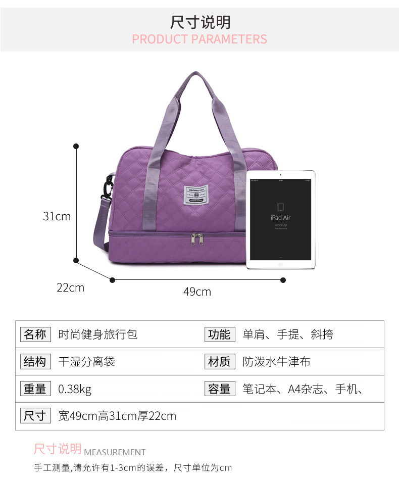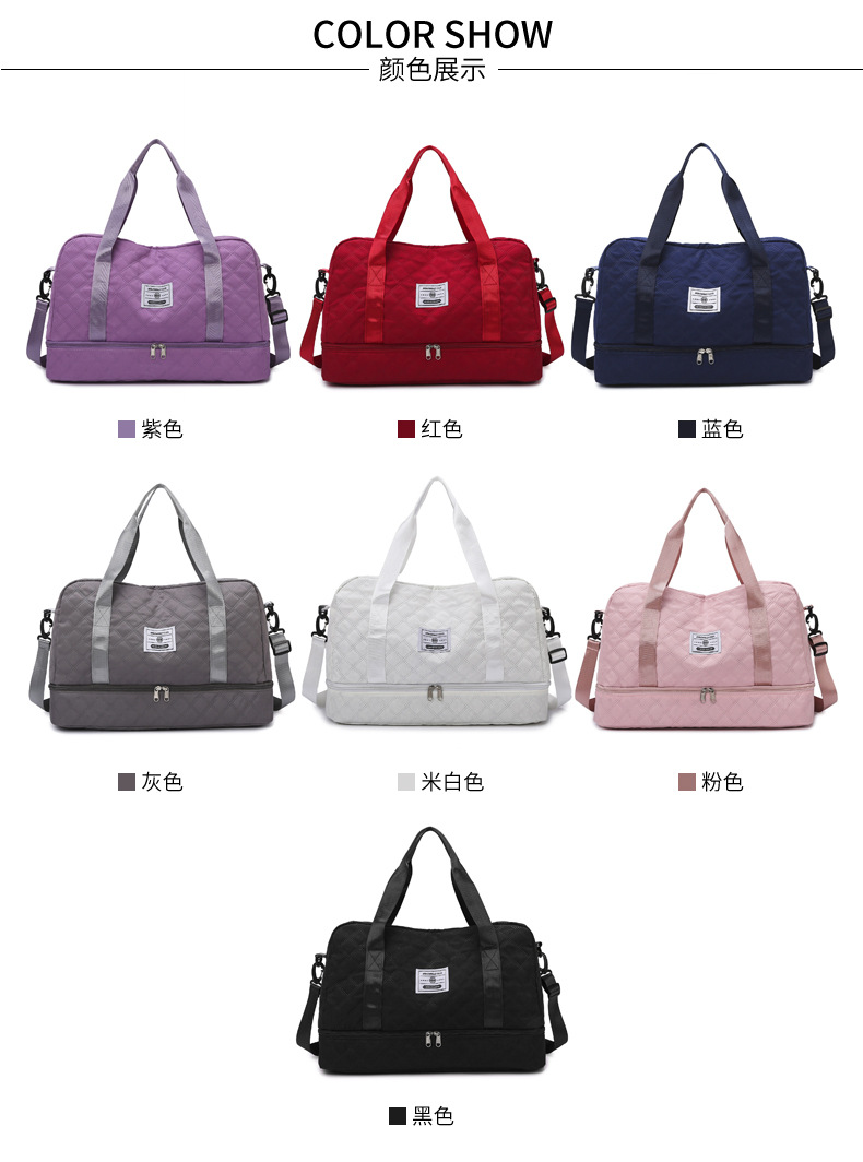 여행 가방 신형 한국판 건습 분리 대용량 다이아몬드 무늬 수하물 가방 핸드백 크로스백 임산부 수납 가방 요가 가방
