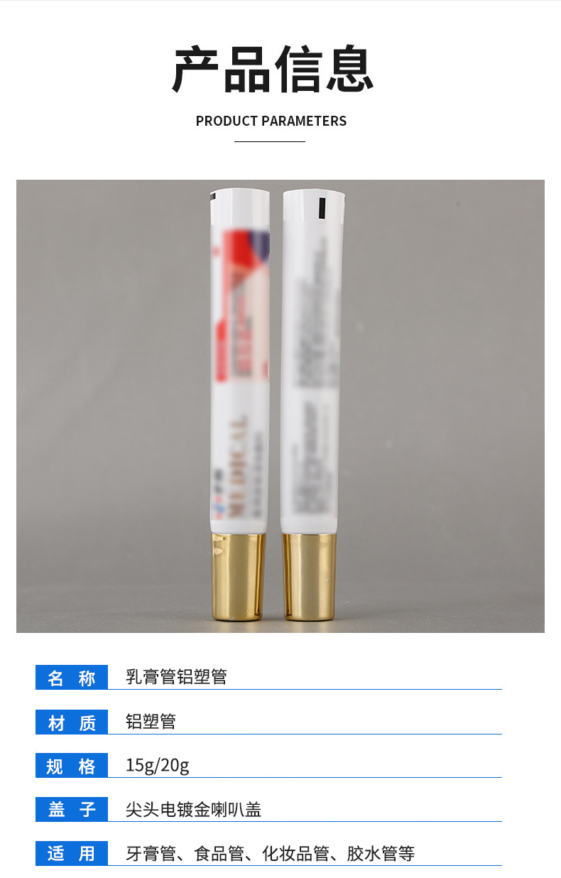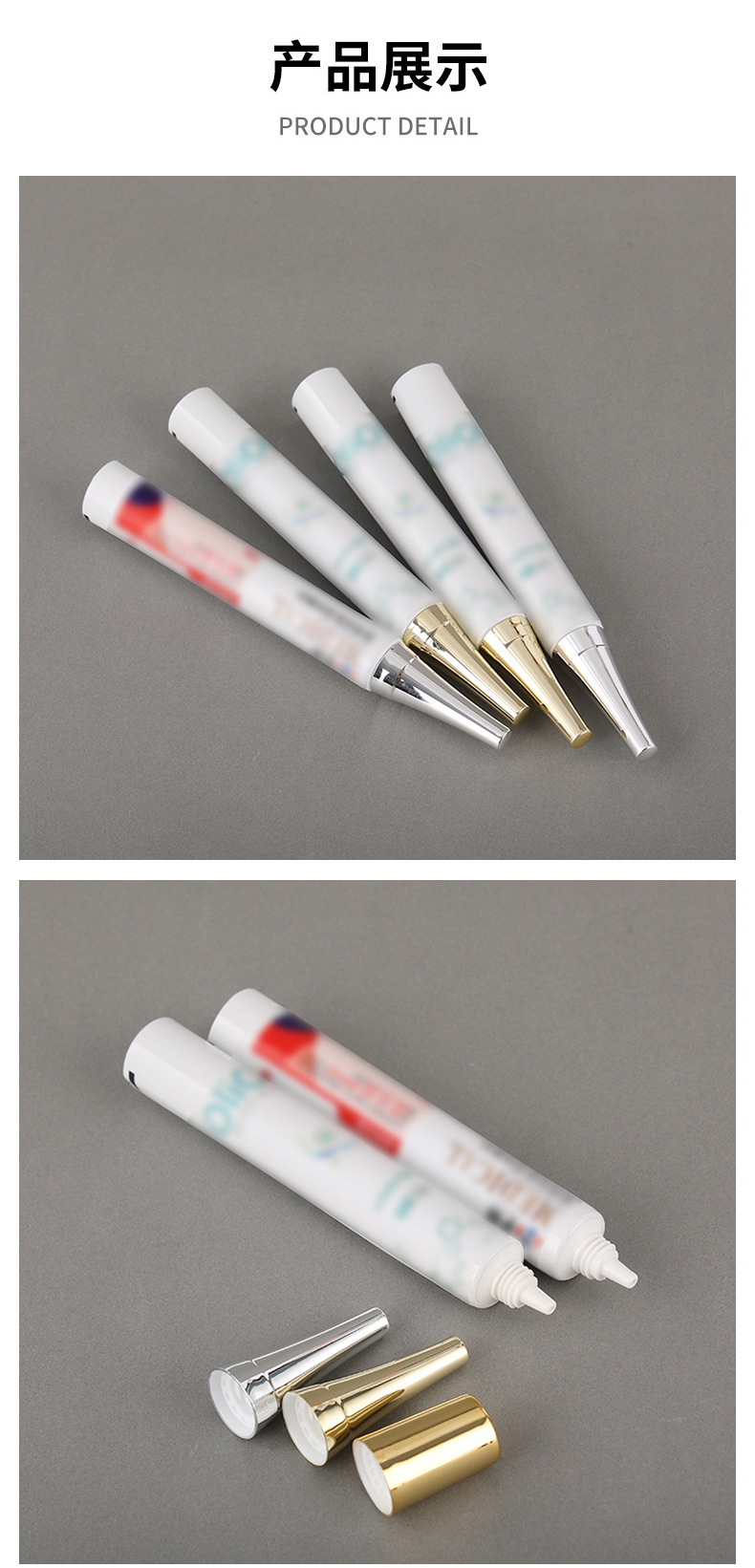 공장 직접 공급 화장품 튜브 포장 15g 20g 뾰족한 전기 도금 금 트럼펫 커버 크림 튜브 알루미늄 플라스틱 튜브