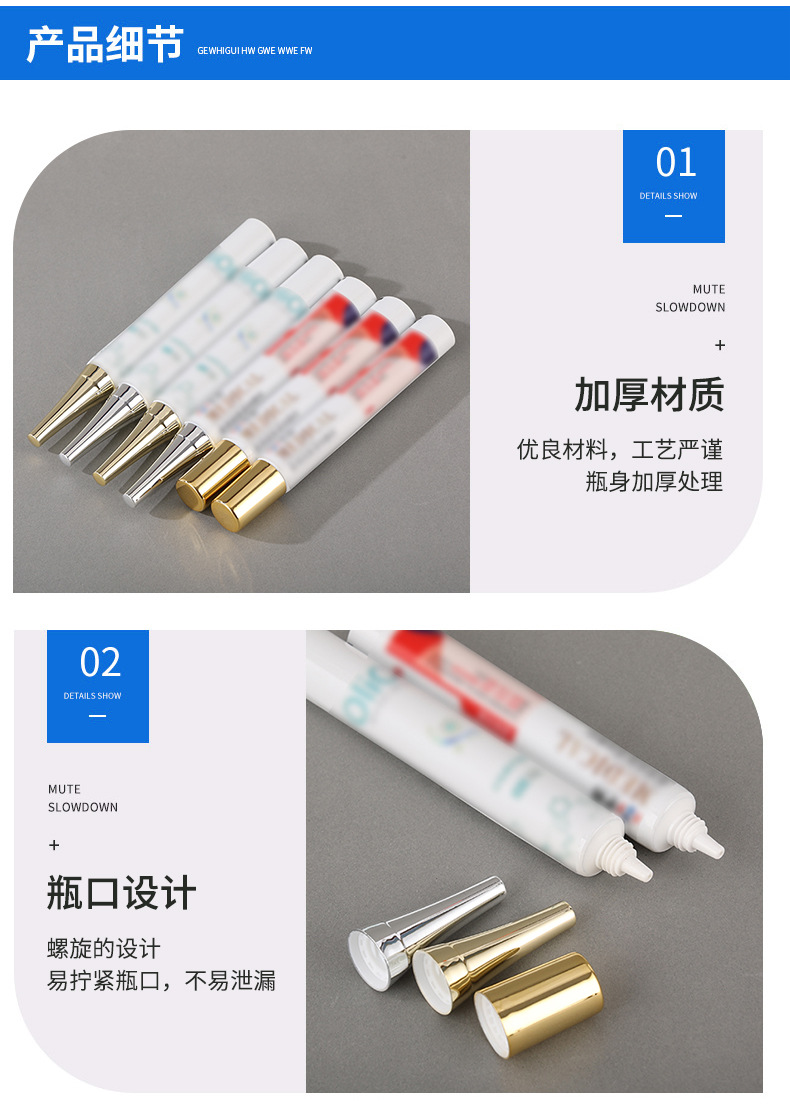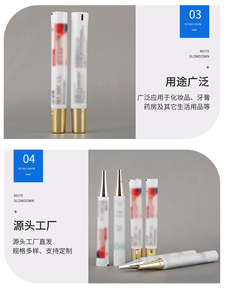 공장 직접 공급 화장품 튜브 포장 15g 20g 뾰족한 전기 도금 금 트럼펫 커버 크림 튜브 알루미늄 플라스틱 튜브스토어 가기
