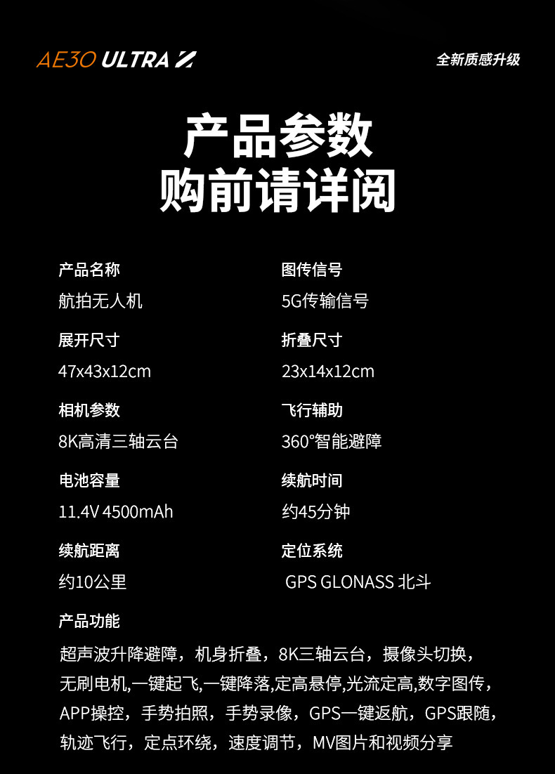 ( 本产品只供外贸出口,本页面所列出的各项参数,均为掌握该飞行器操作厂家技术人员在光照条件充足、无风、无干扰的室外空旷环境测得,属于实际测试得出的数据,并由厂家提供。此数据在不同的外部环境,使用方式,固件版本下,结果或有不同程度的差异,请以实际体验为准。)